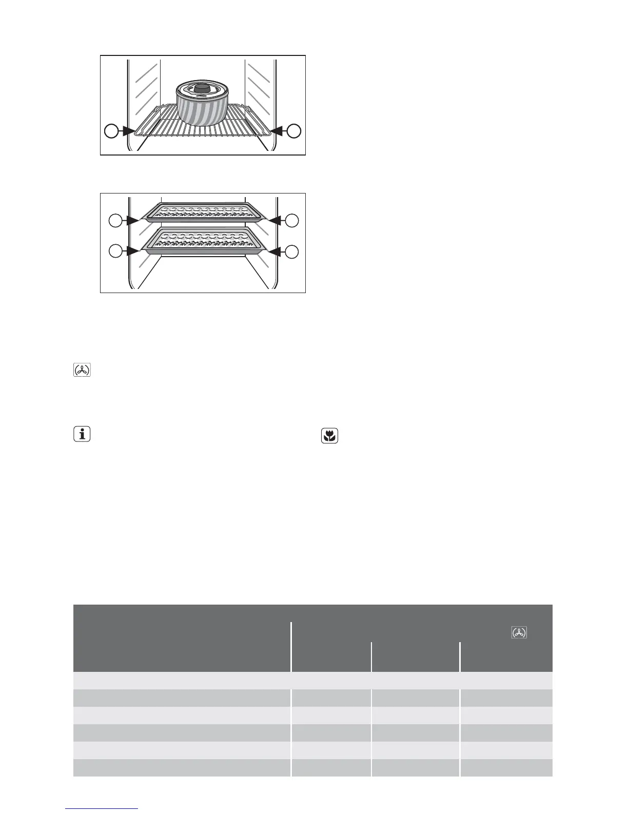 tings, baking times and oven shelf levels for