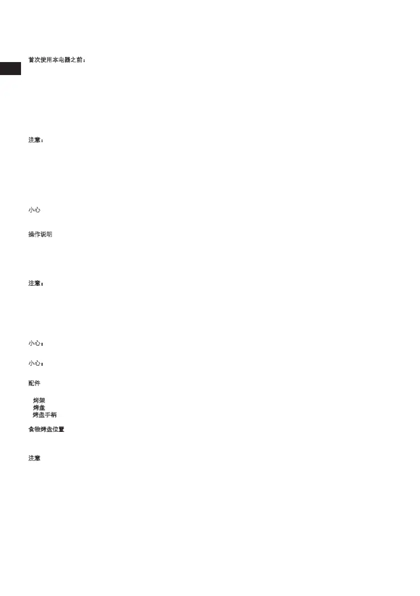 9.使用后应拔出电源插头。待烤箱完全冷却后才可进行移动或清洁。