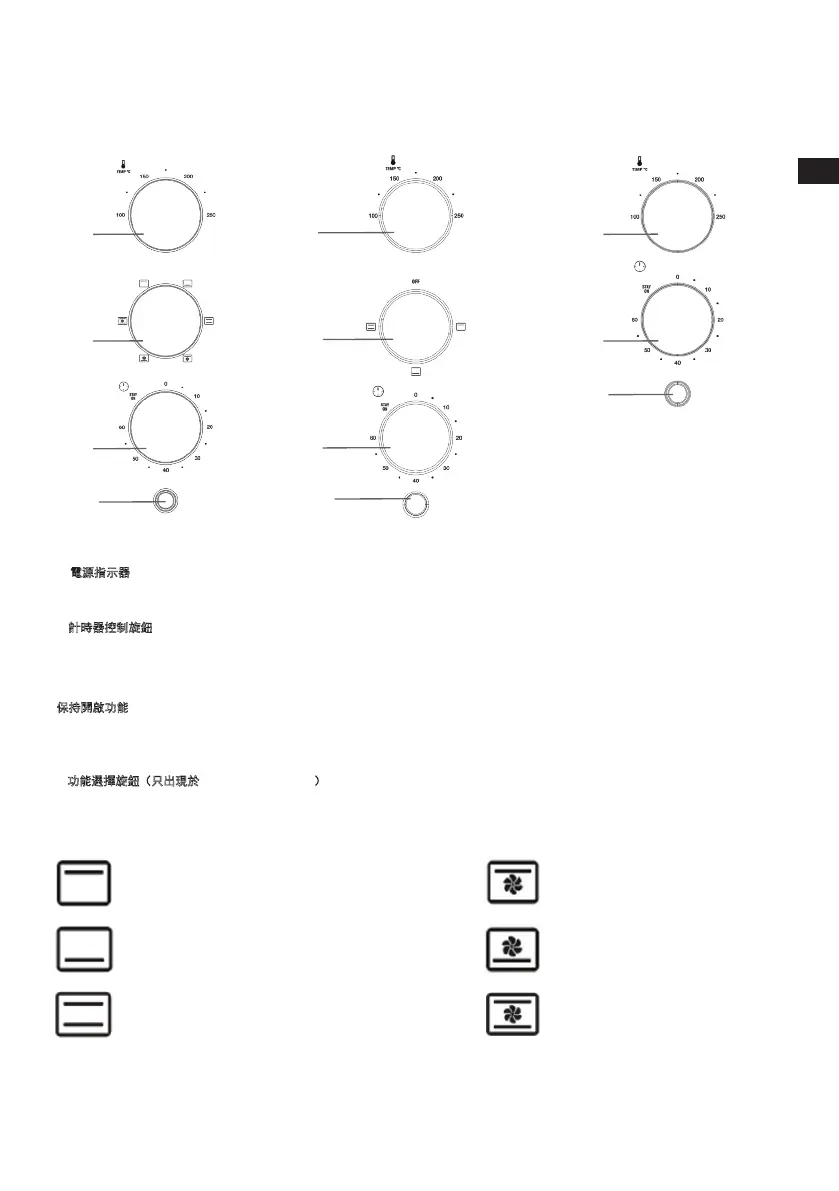 請注意,當處於保持開啟狀態,烤箱會持續於指定溫度設定中發熱。要關掉本機,把計時器控制旋鈕轉動至「0」位置並確保電源指示燈