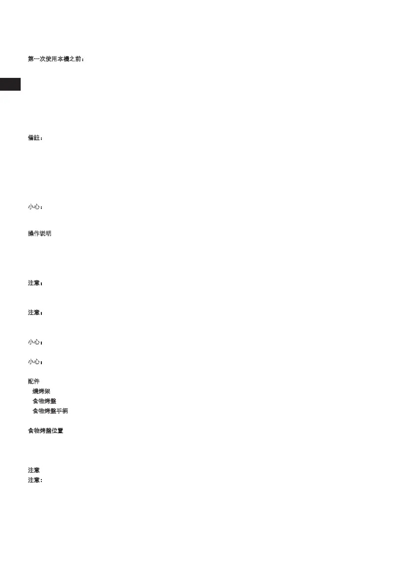 備註:第一次開啟烤箱時,可能會有輕微的氣味和一些煙霧,這是正常的現象,而且不會維持很久。