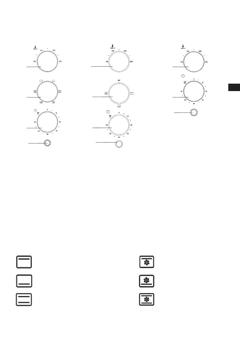 Sử dụng núm này đ bt hoặc tt lò nướng và đặt hn giờ (từ 0 đến 60 phút) bằng cách vặn theo chiều kim đồng hồ. Khi kết thúc thời gian đã