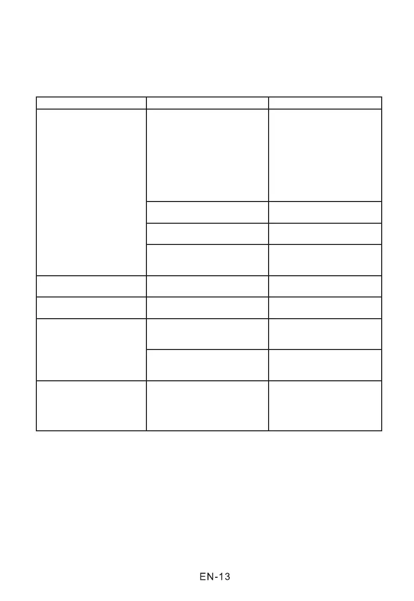 Symptoms Possible causes Solutions
