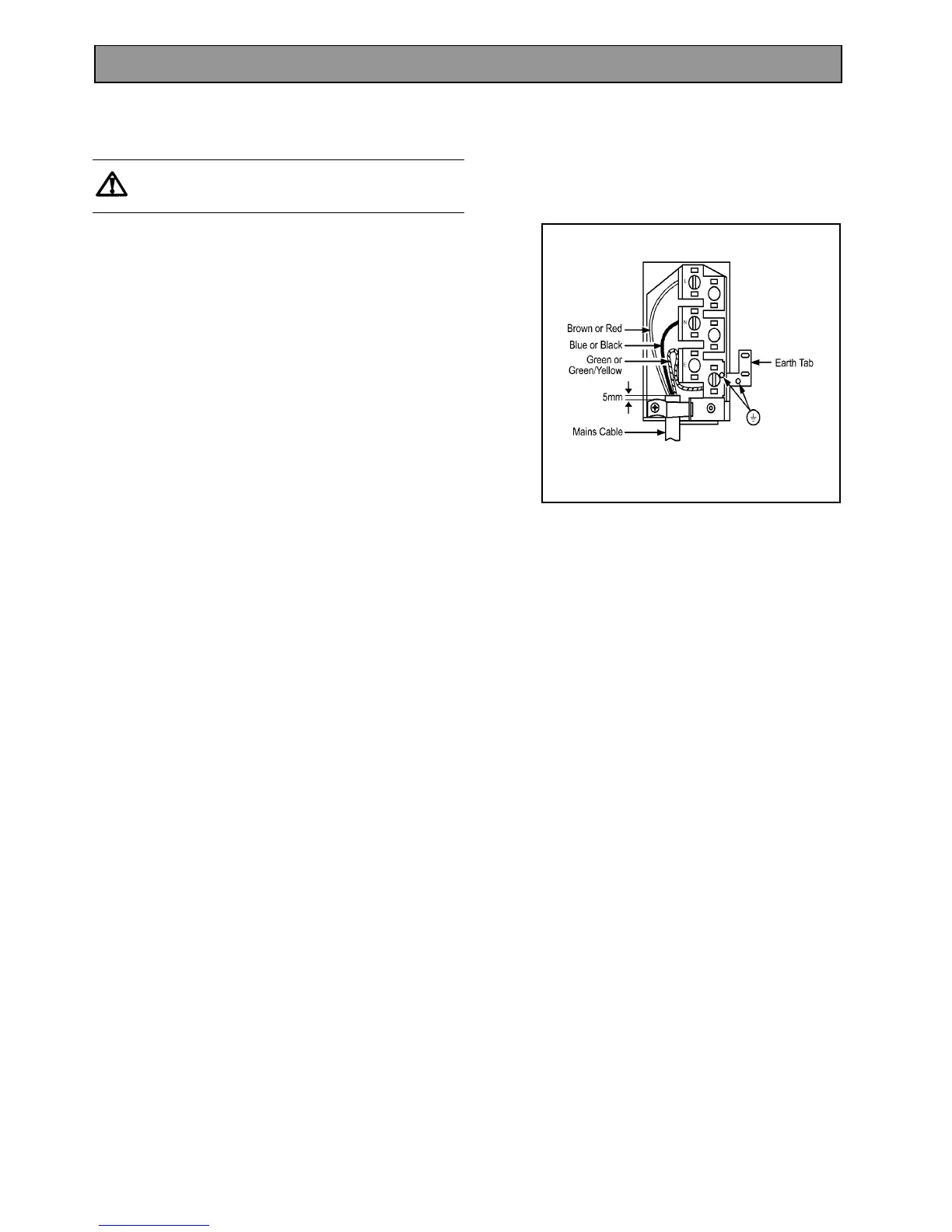 · Clamp the mains cable securely ensuring 5mm of
