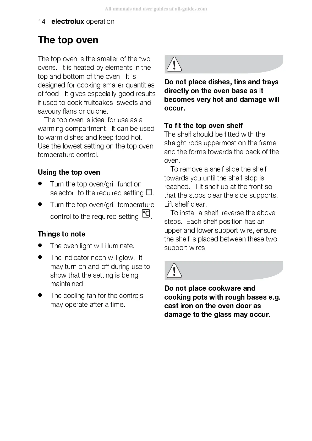 Using the top oven