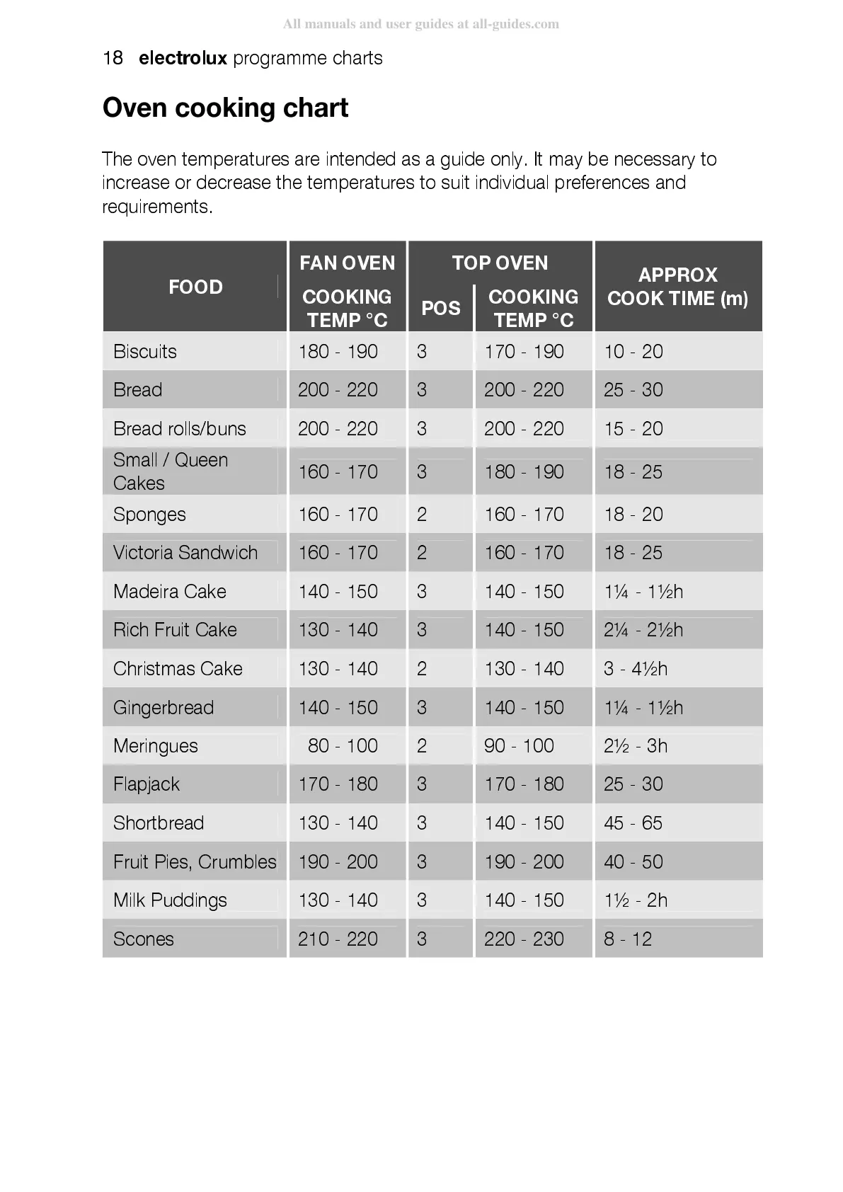 The oven temperatures are intended as a guide only. It may be necessary to