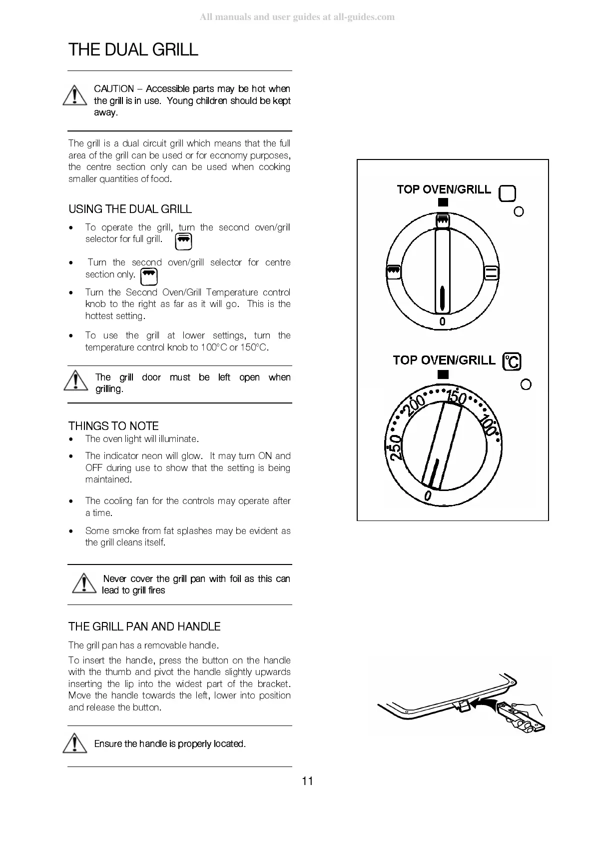 To operate the grill, turn the second oven/grill