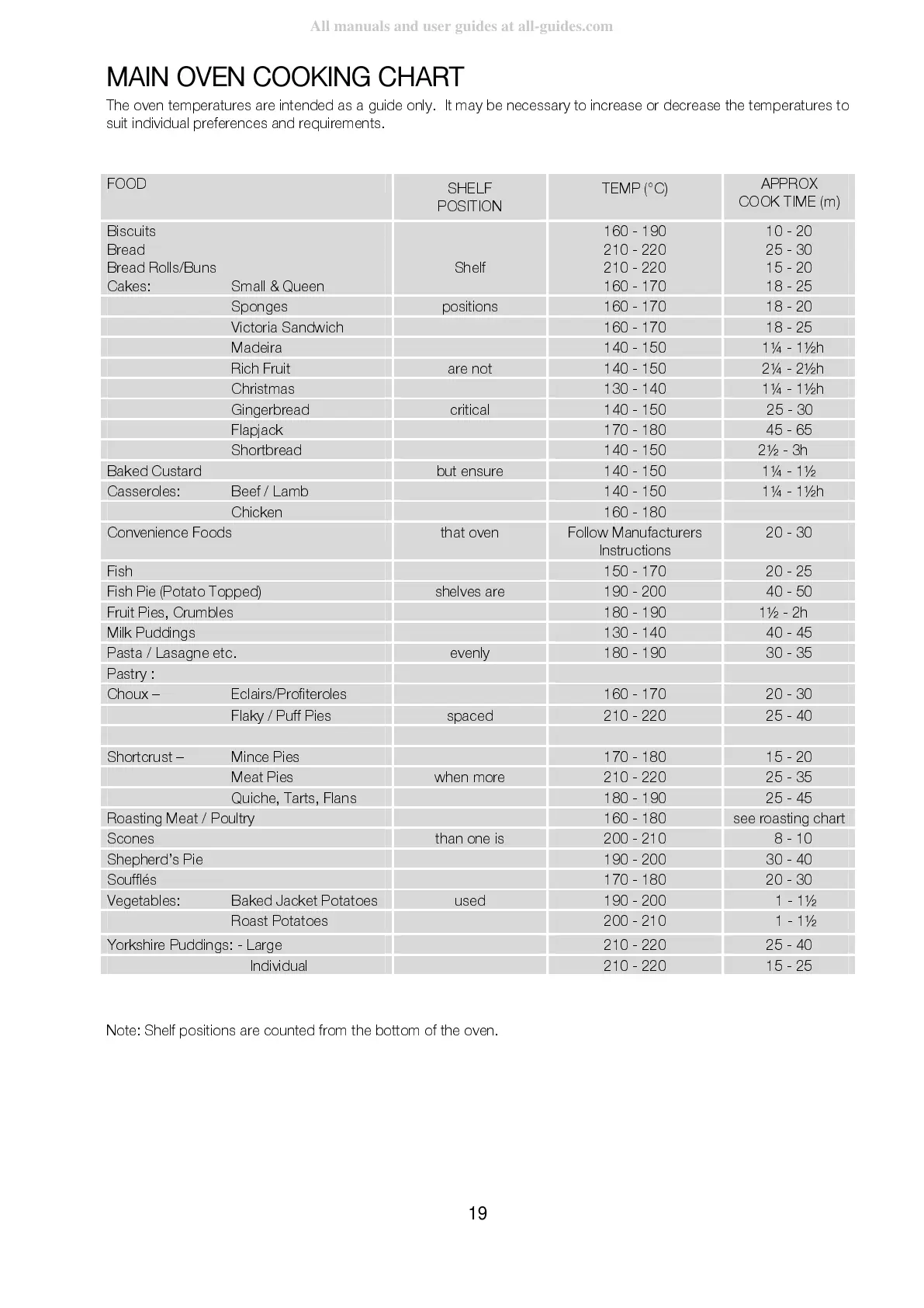 The oven temperatures are intended as a guide only. It may be necessary to increase or decrease the temperatures to