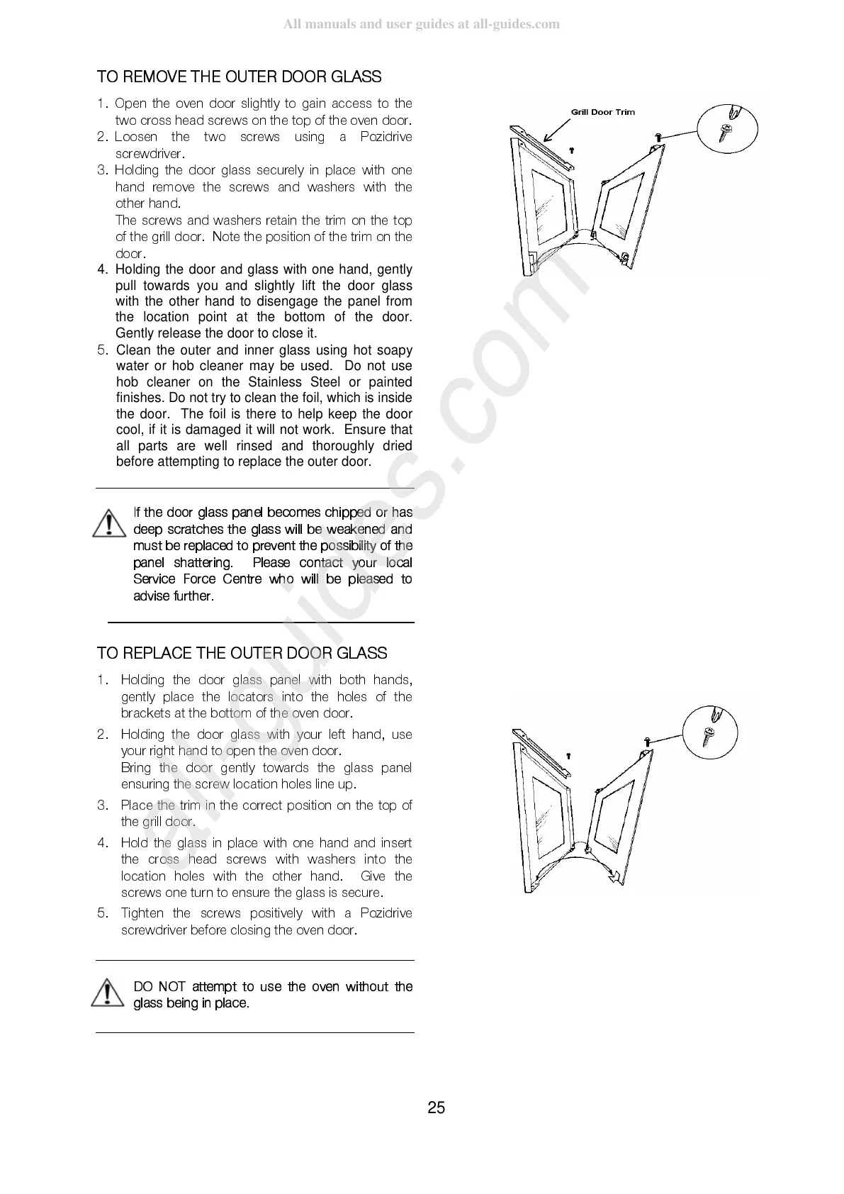 water or hob cleaner may be used. Do not use