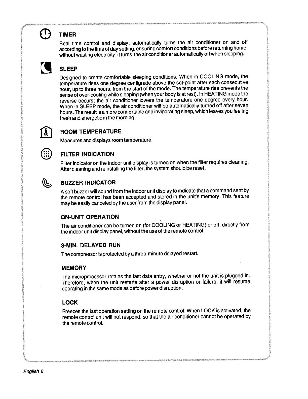 Electrolux EPE 800 - ADVANCED OPERATION FEATURES; Timer and Sleep Functions; Indicator Lights and Buzzer; On-Unit Control and Memory