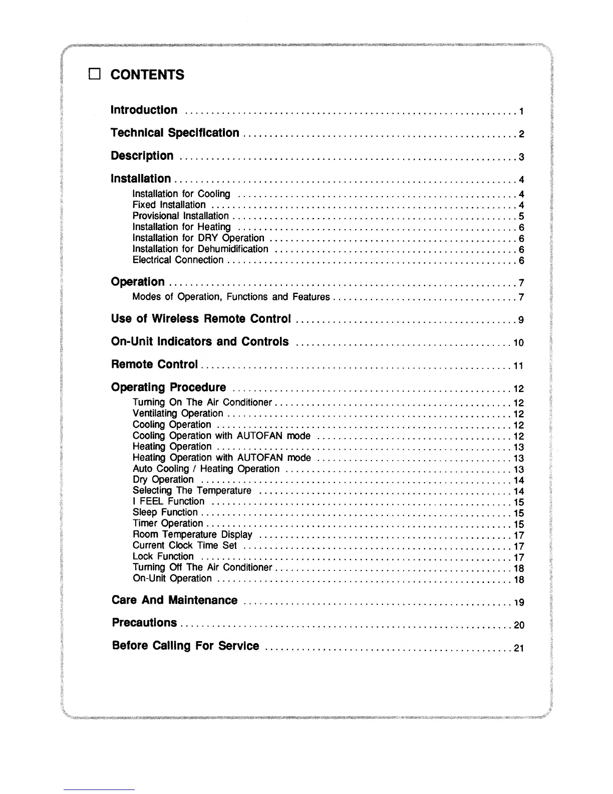Electrolux EPE 800 - Table of Contents