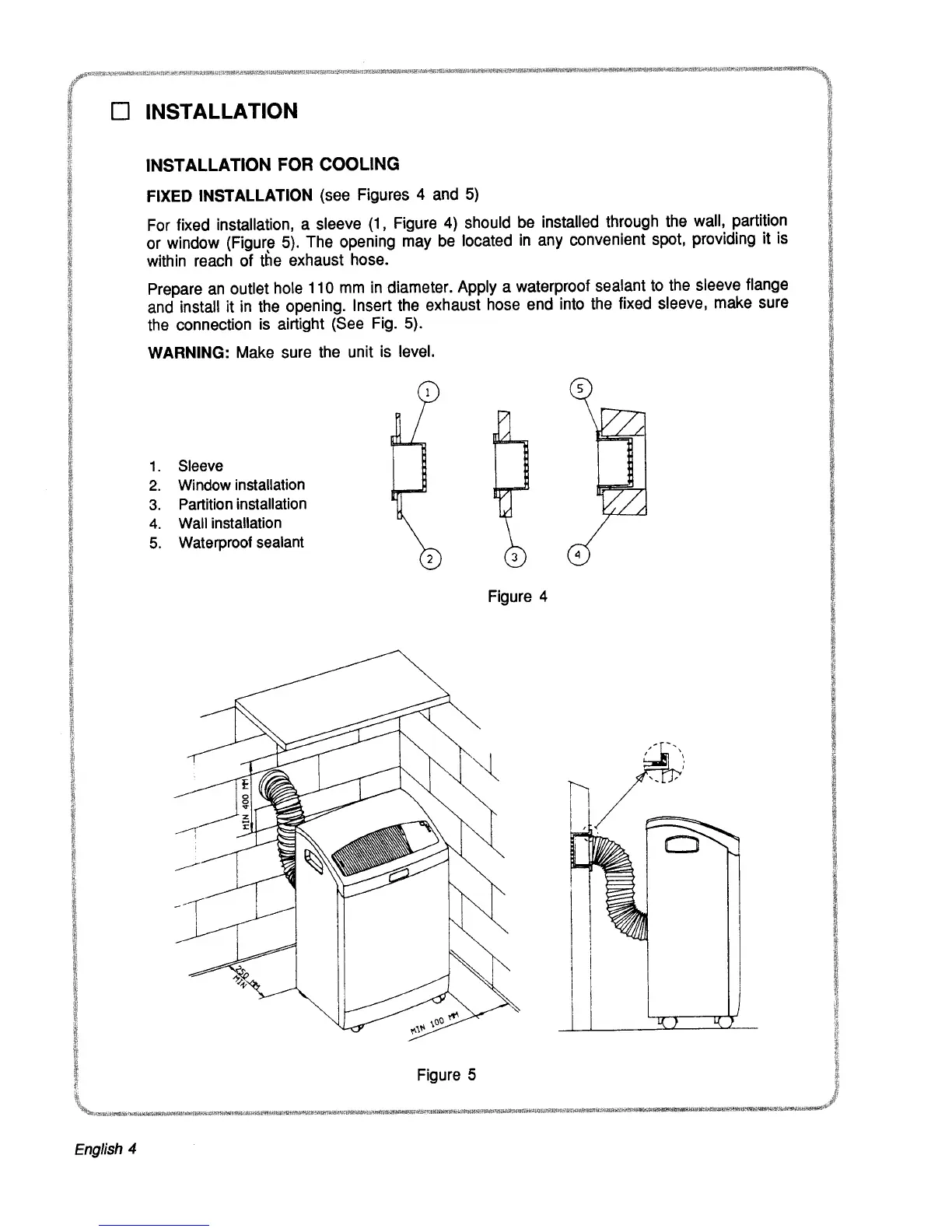 Electrolux EPE 800 - FIXED INSTALLATION FOR COOLING; Sleeve Installation Procedure