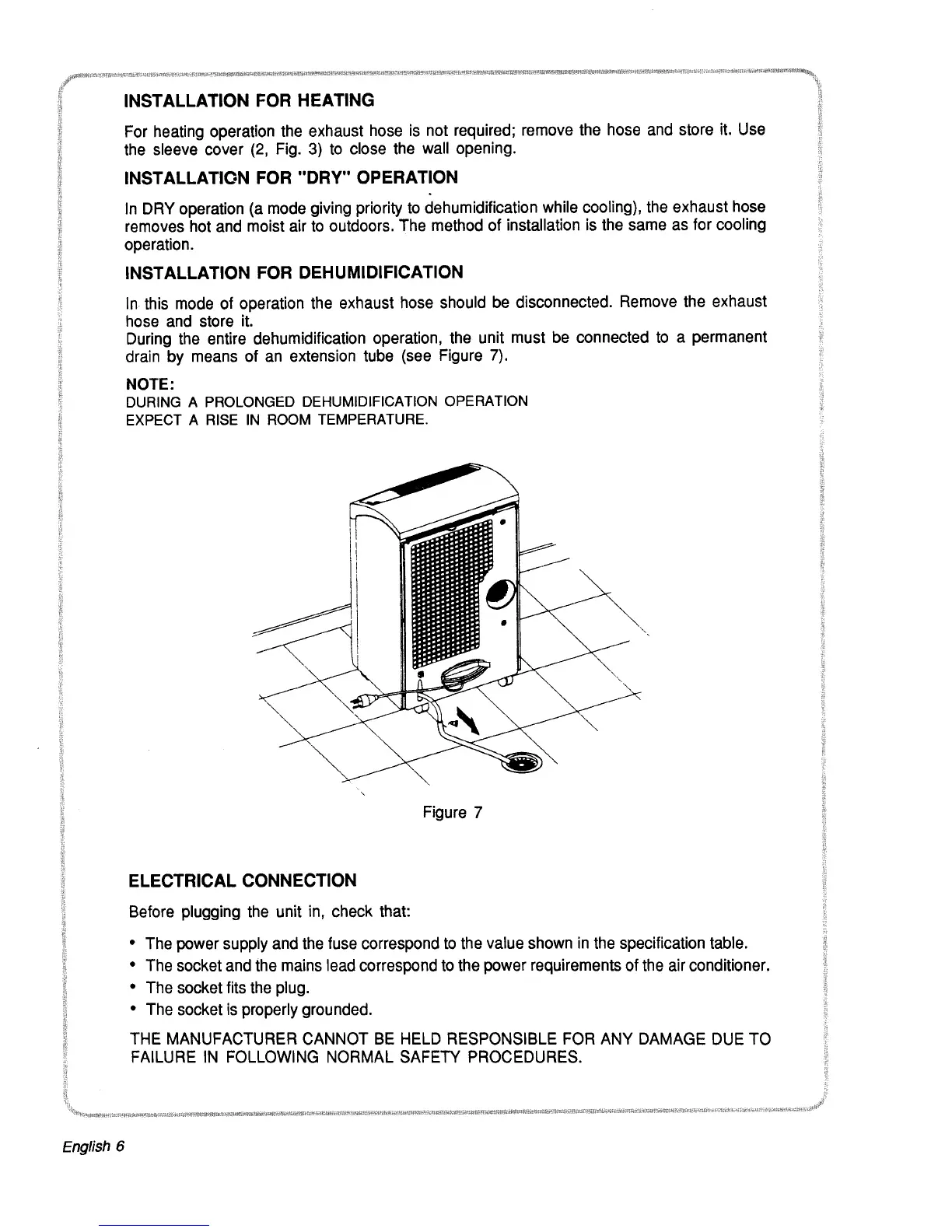 Electrolux EPE 800 - ADDITIONAL INSTALLATION TYPES; Installation for Heating; Installation for DRY Operation; Installation for Dehumidification
