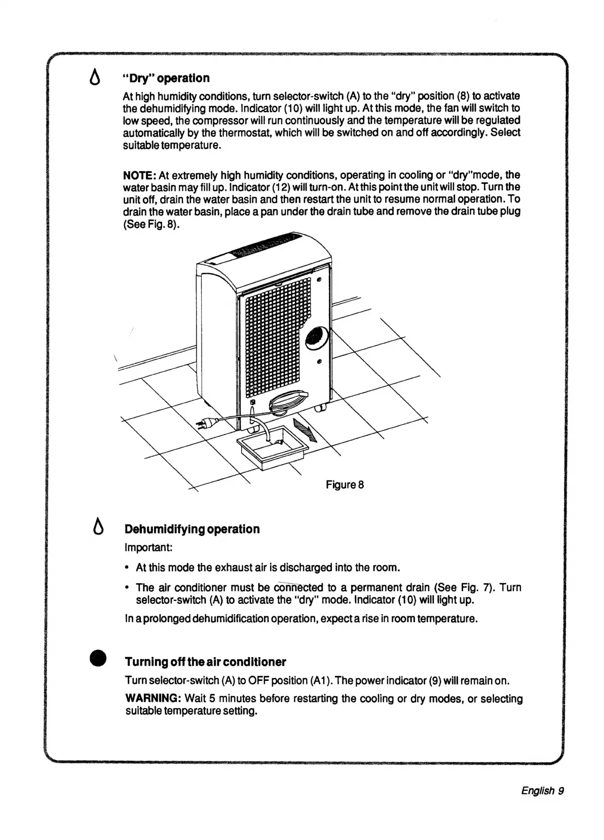 Electrolux EPM-800 - Dry Operation; Dehumidifying Operation; Turning off the Air Conditioner