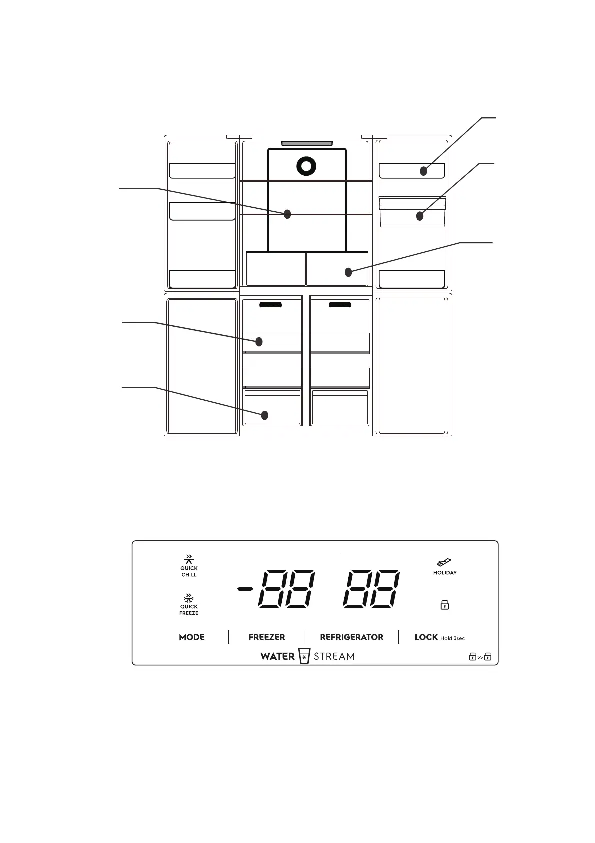 Catatan: Ilustrasi menunjukkan beragam fitur, tapi mungkin tidak benar-benar pas dengan kulkas Anda.