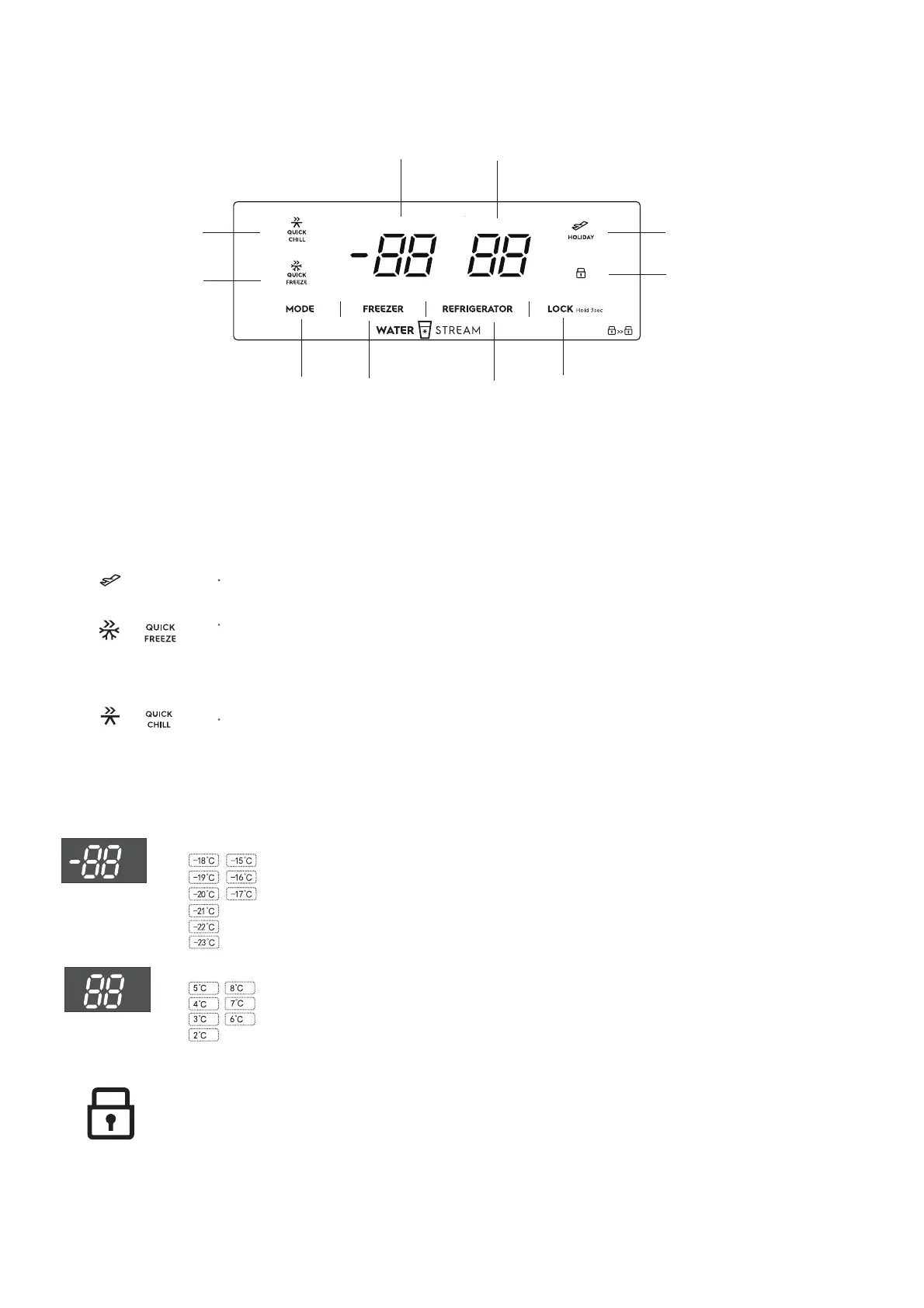 thị. Khi tủ lạnh hoạt động ở chế độ này, các nút khác trên bảng điều khiển sẽ không hoạt động,