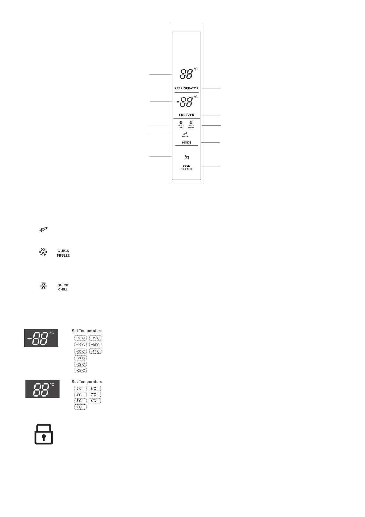 mode,the set temperature of the fridge compartment locks on 2°C. The program runs 150mins