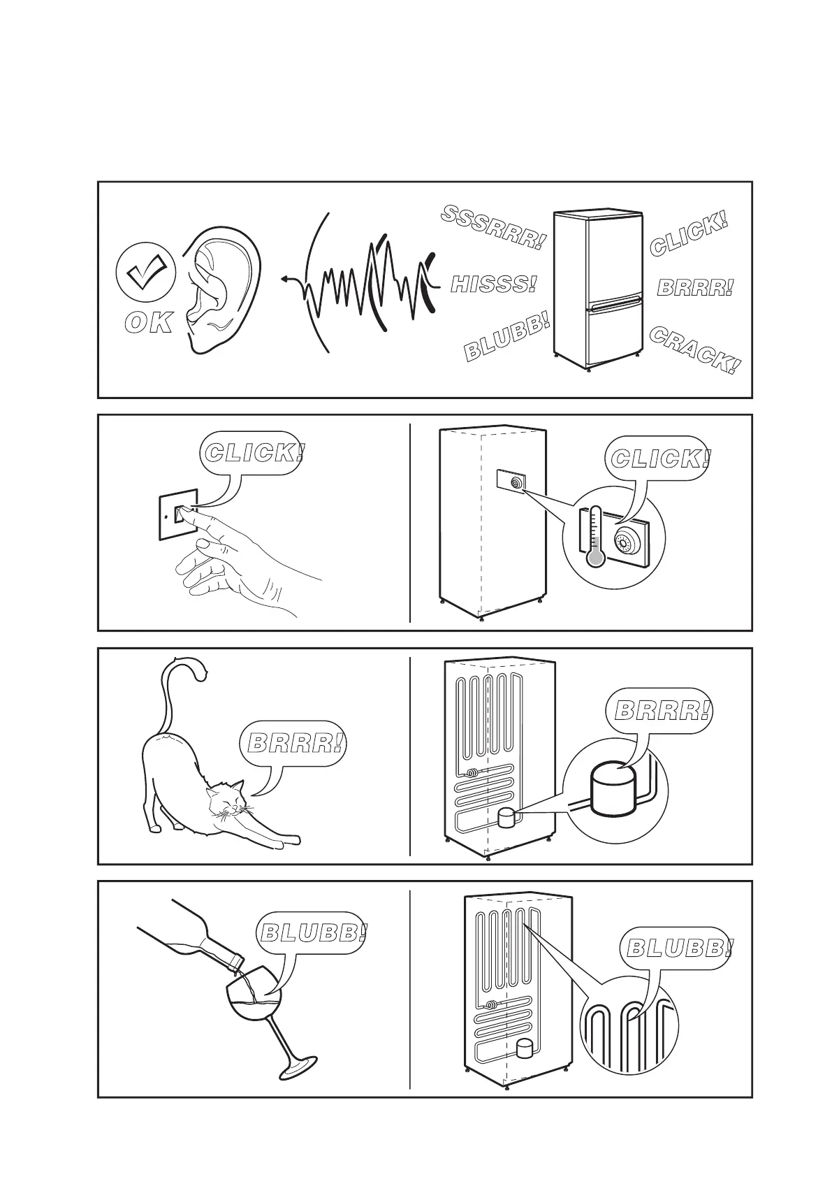 There are some sounds during normal running (compressor, refrigerant circulation).