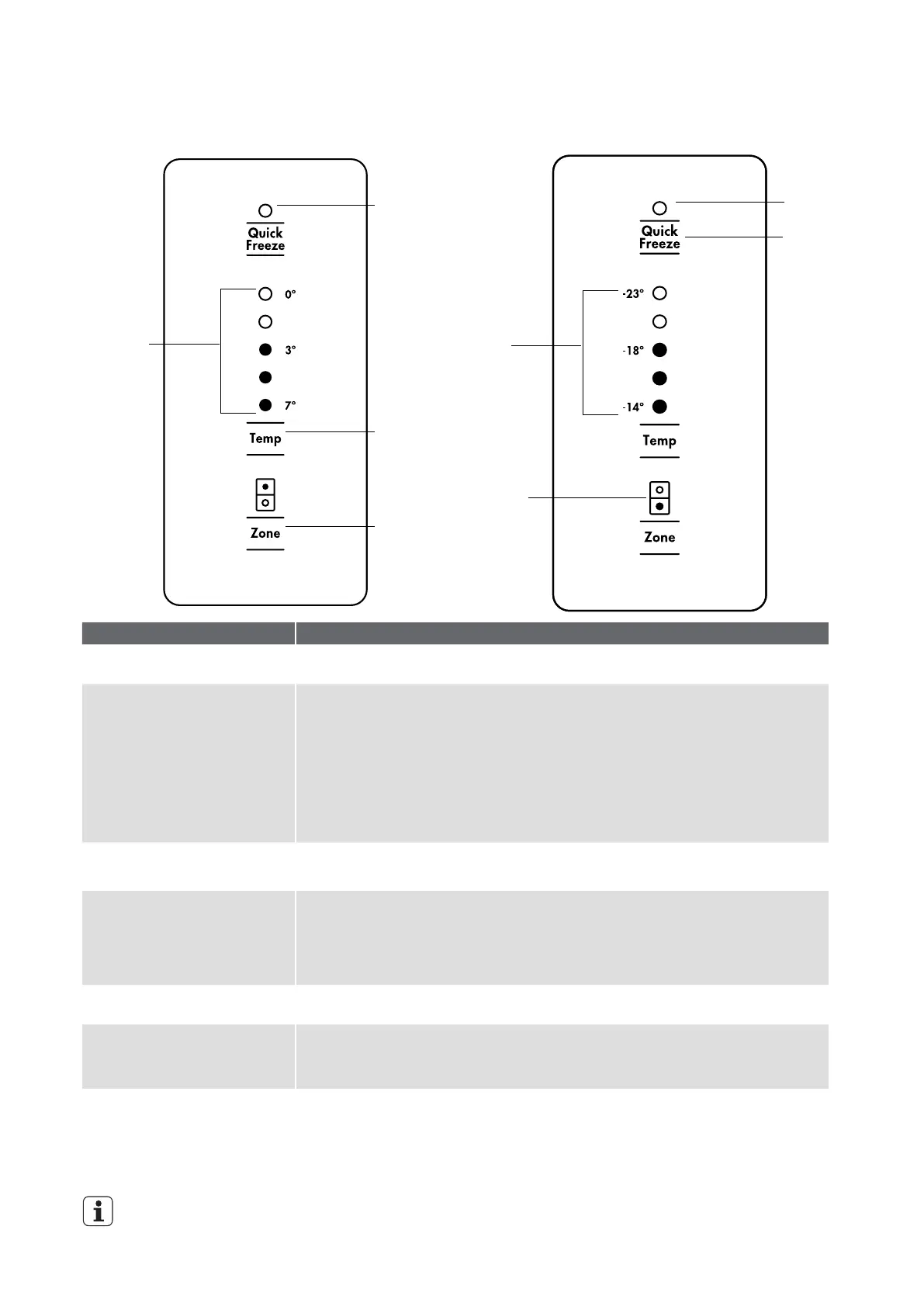 • L 'icône d'indication réfrigérateur / congélateur montrera quelle zone est