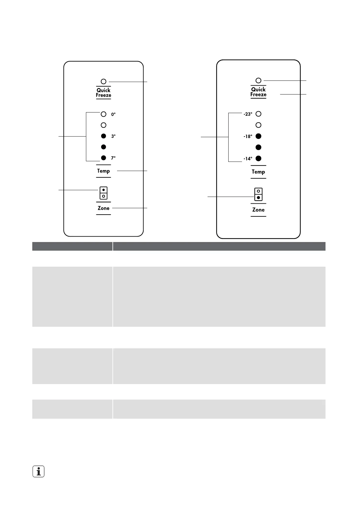 • Для снижения температуры в выбранном отделении нажимайте кнопку Temp.