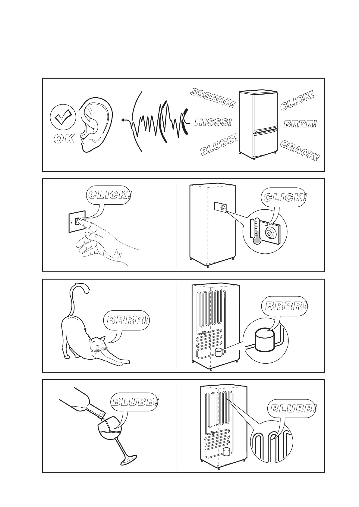 В обычных условиях слышны звуки работы компрессора, циркуляции хладагента и т. д.