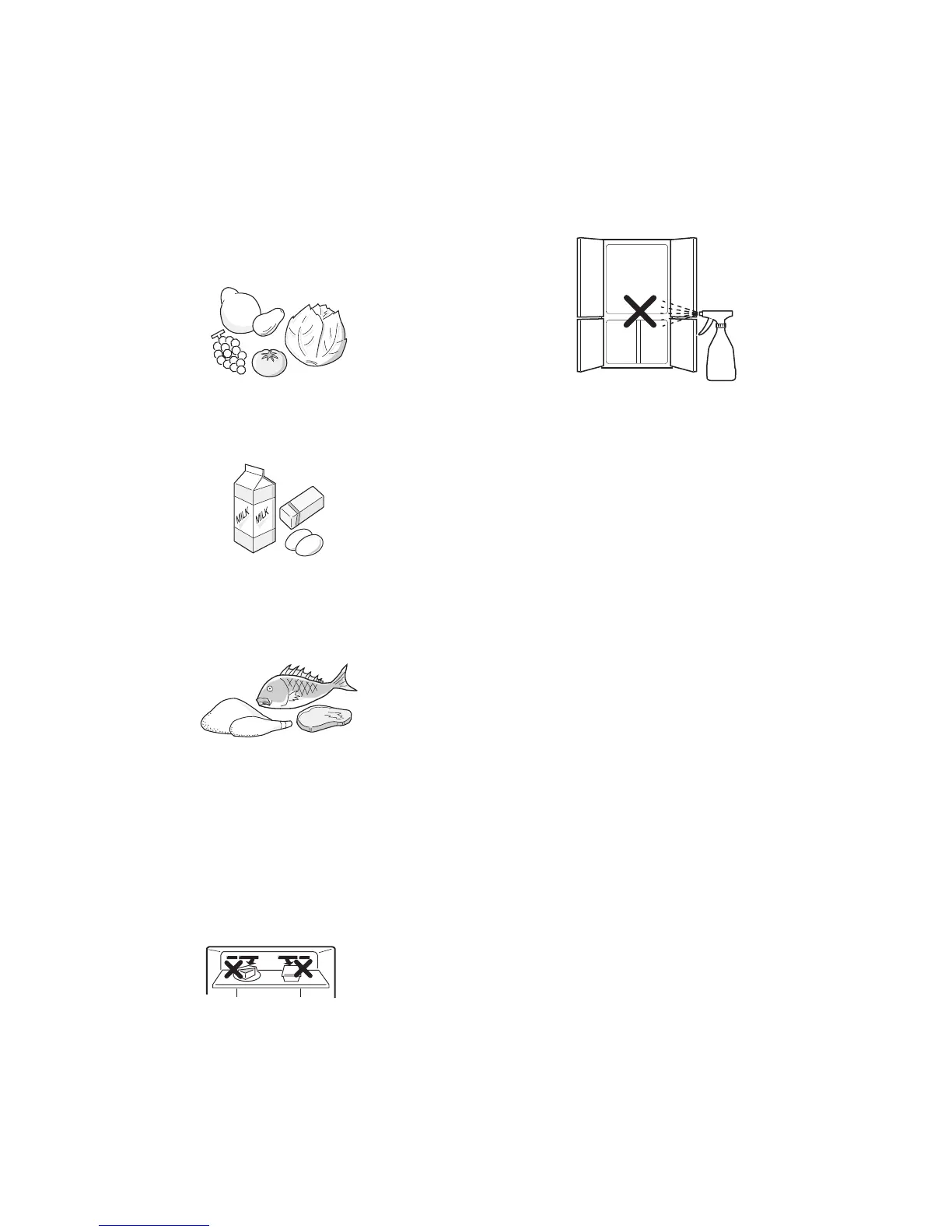 • Donotplacefooddirectlyinfrontofcoldairoutlet.This