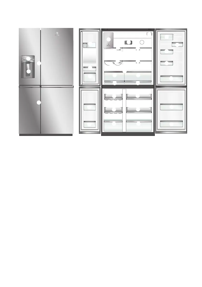 4 Water filter 15 Upper fixed door bin