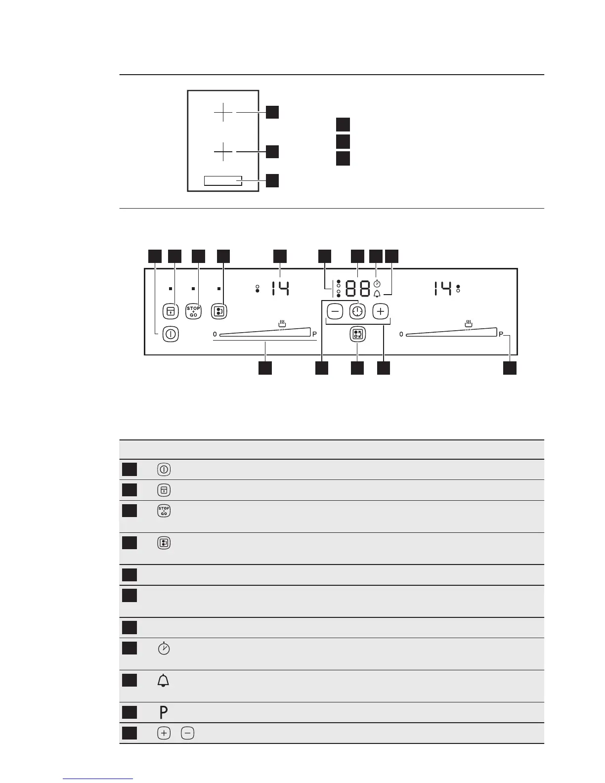 Kochstufenanzeige Zeigt die Kochstufe an.