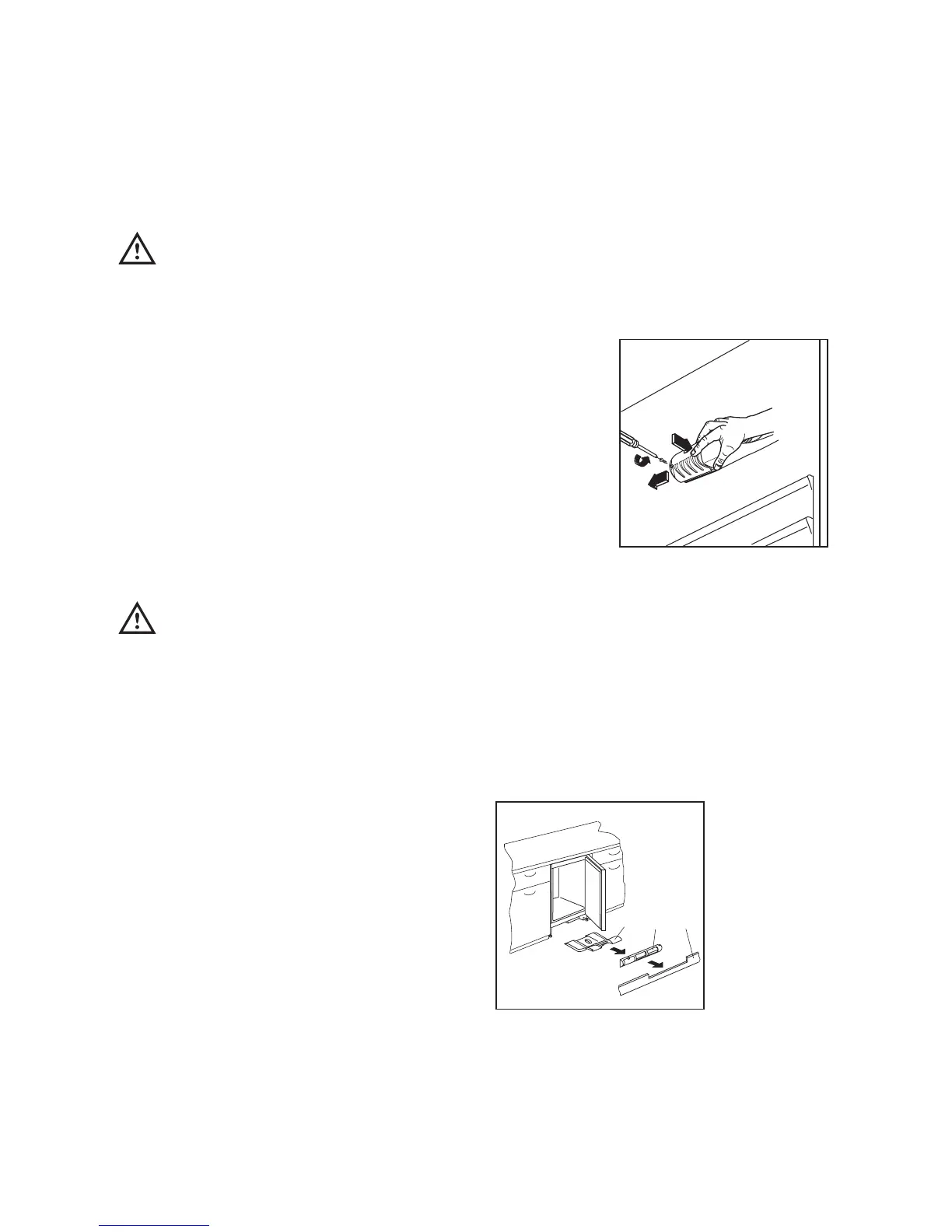 1. Remove the plinth (1), then the ventilation grid (2);
