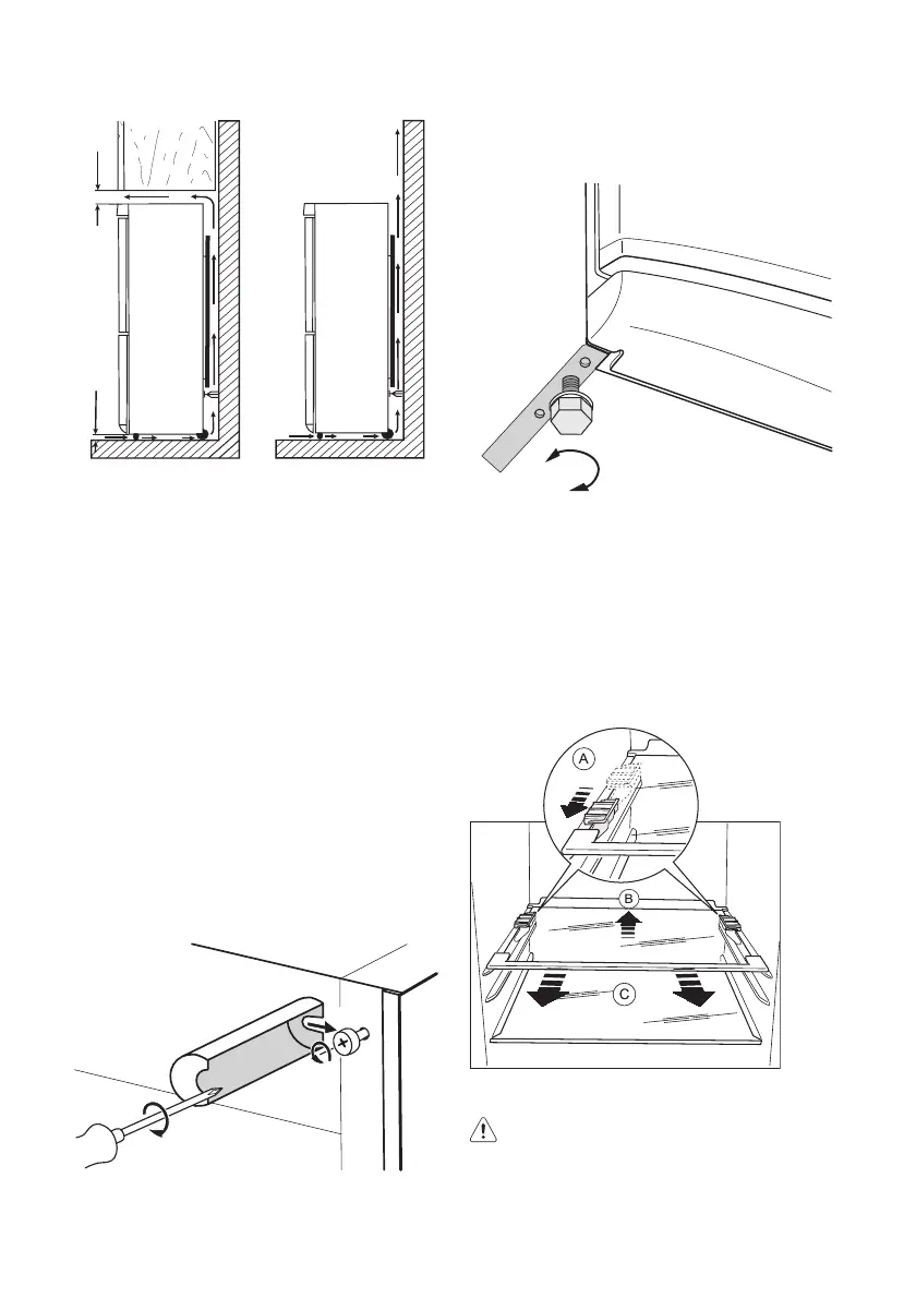 1. Desloque os suportes das prateleiras na direc-