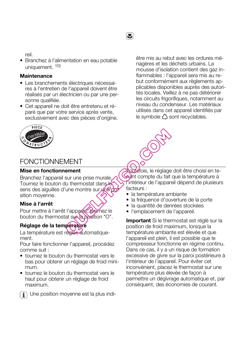 • tournez le bouton du thermostat vers le