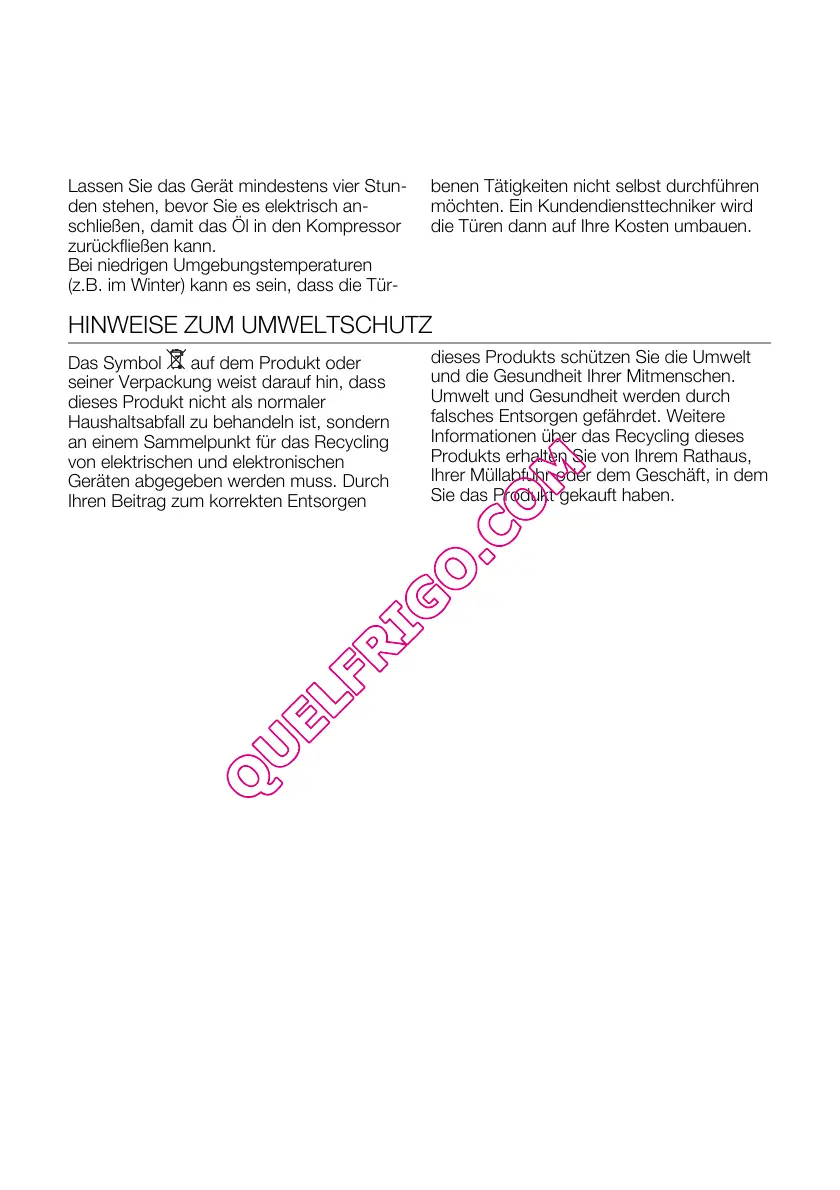 Lassen Sie das Gerät mindestens vier Stun-