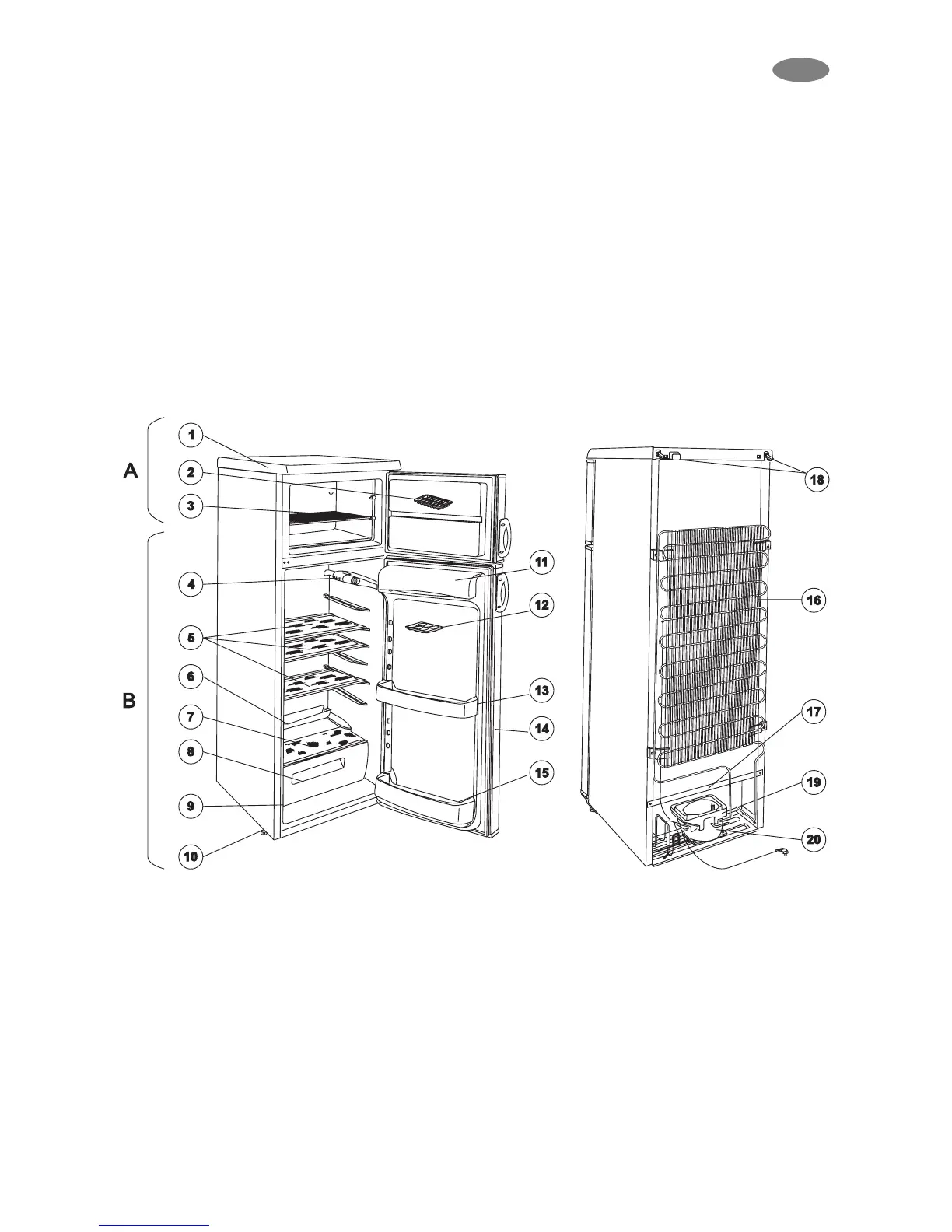 compressor and freezer placed in the upper part”.