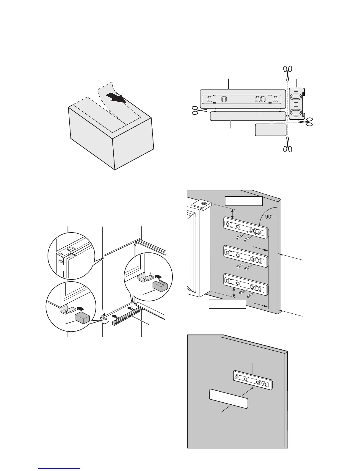 Attach the hinge covers (E) to the