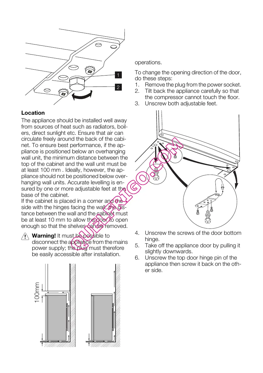 The appliance should be installed well away