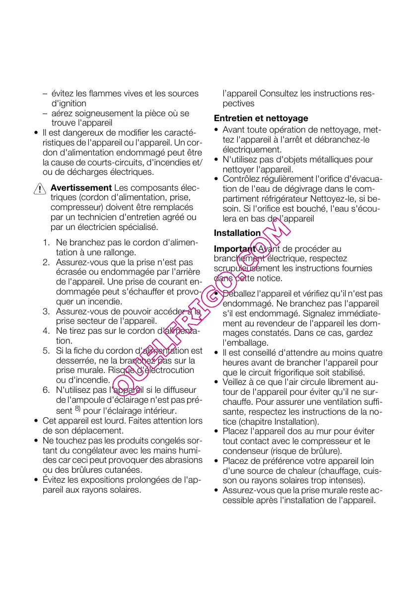 1. Ne branchez pas le cordon d'alimen-