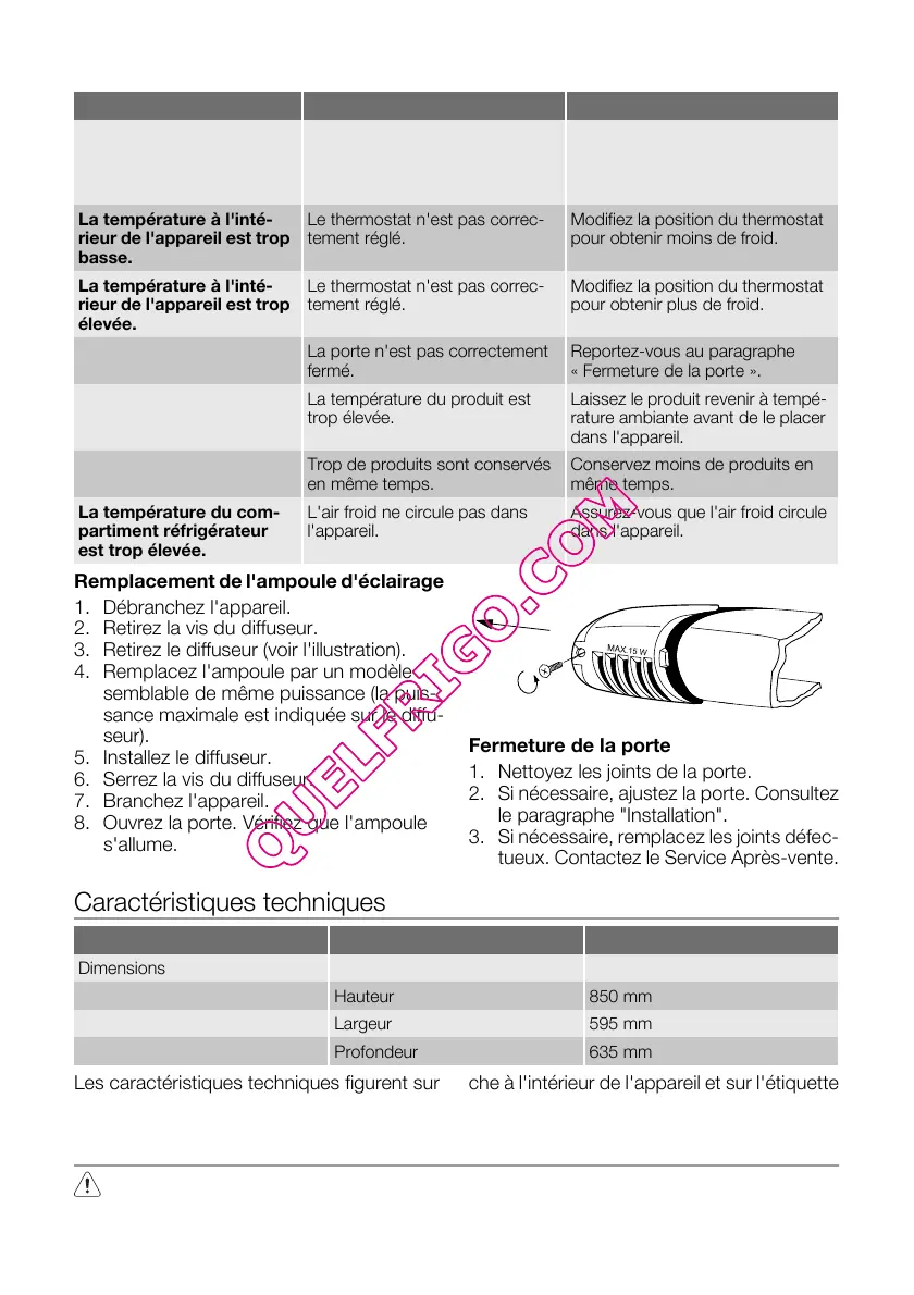 8. Ouvrez la porte. Vérifiez que l'ampoule