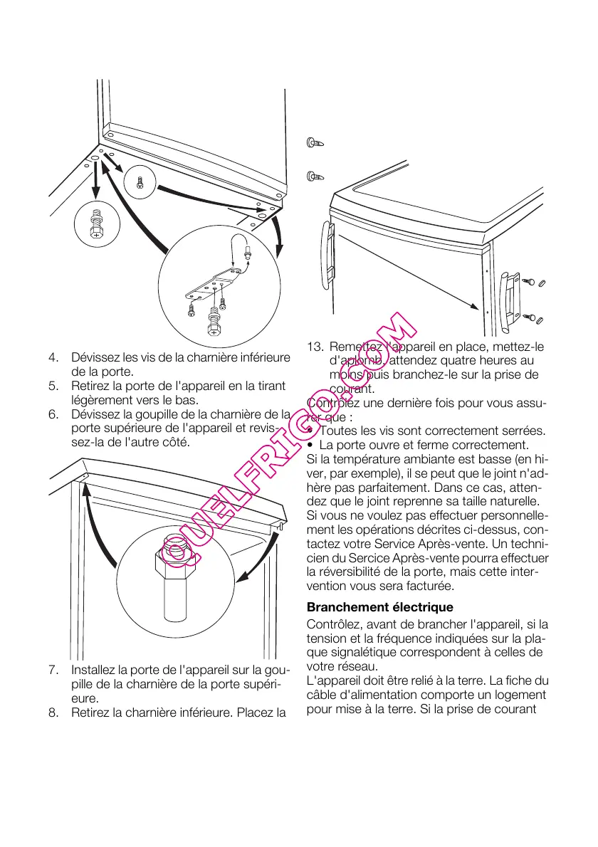 7. Installez la porte de l'appareil sur la gou-