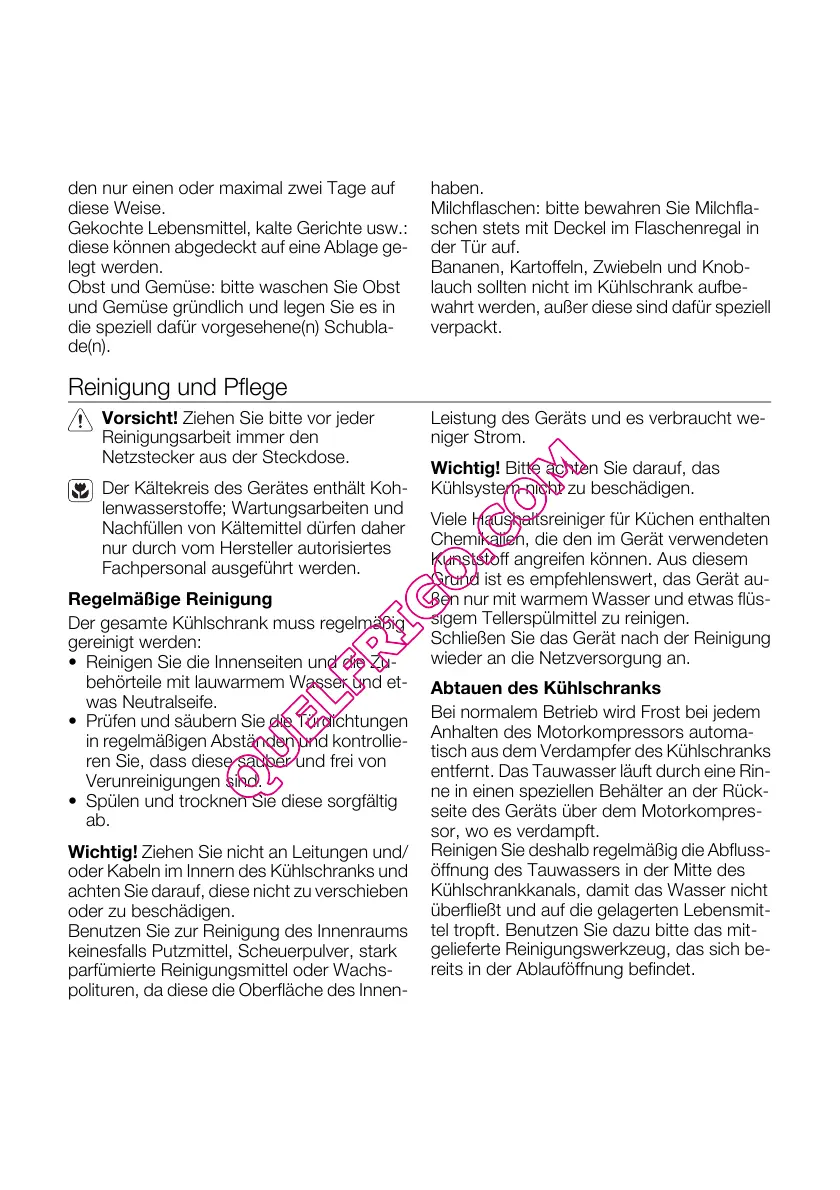 entfernt. Das Tauwasser läuft durch eine Rin-