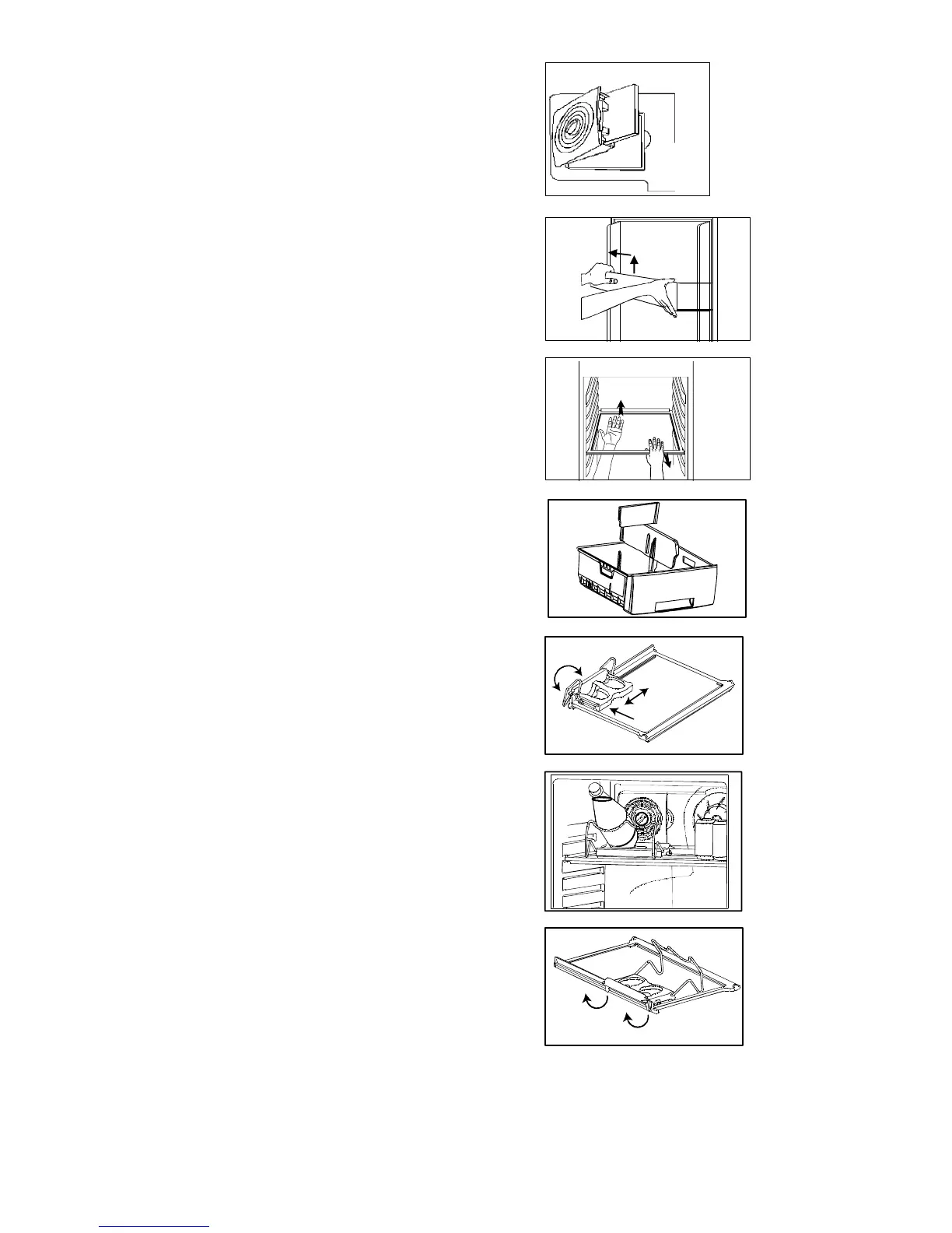 Certain shelves must be lifted up by the rear edge to