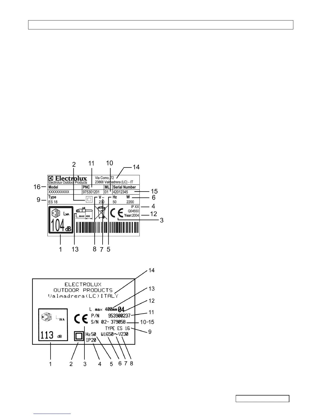 Example of identification label