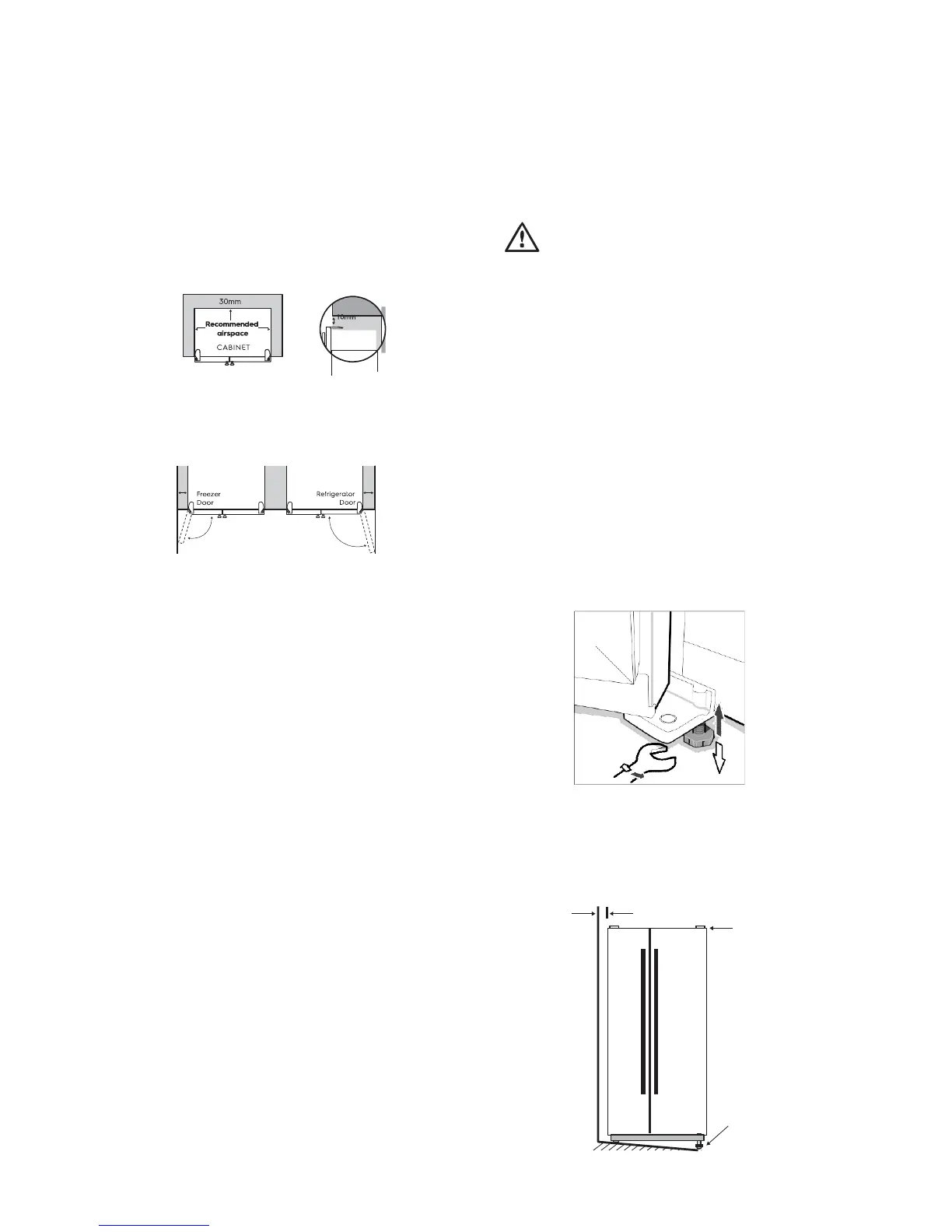 2. Allow 30mm clearance at the back of the refrigerator.
