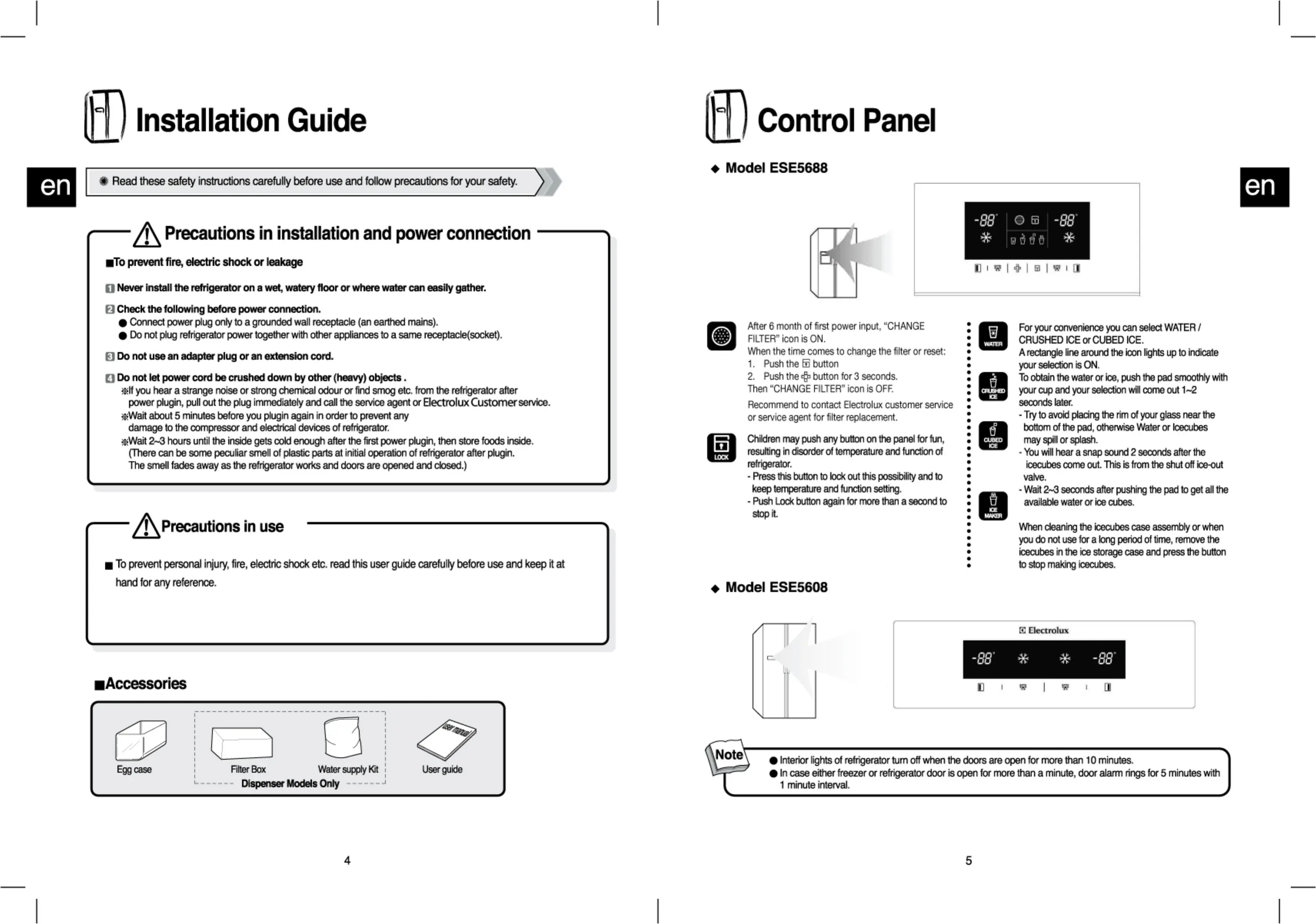 Electrolux ESE5608 - Installation Guide; Precautions in installation and power connection; Precautions in use