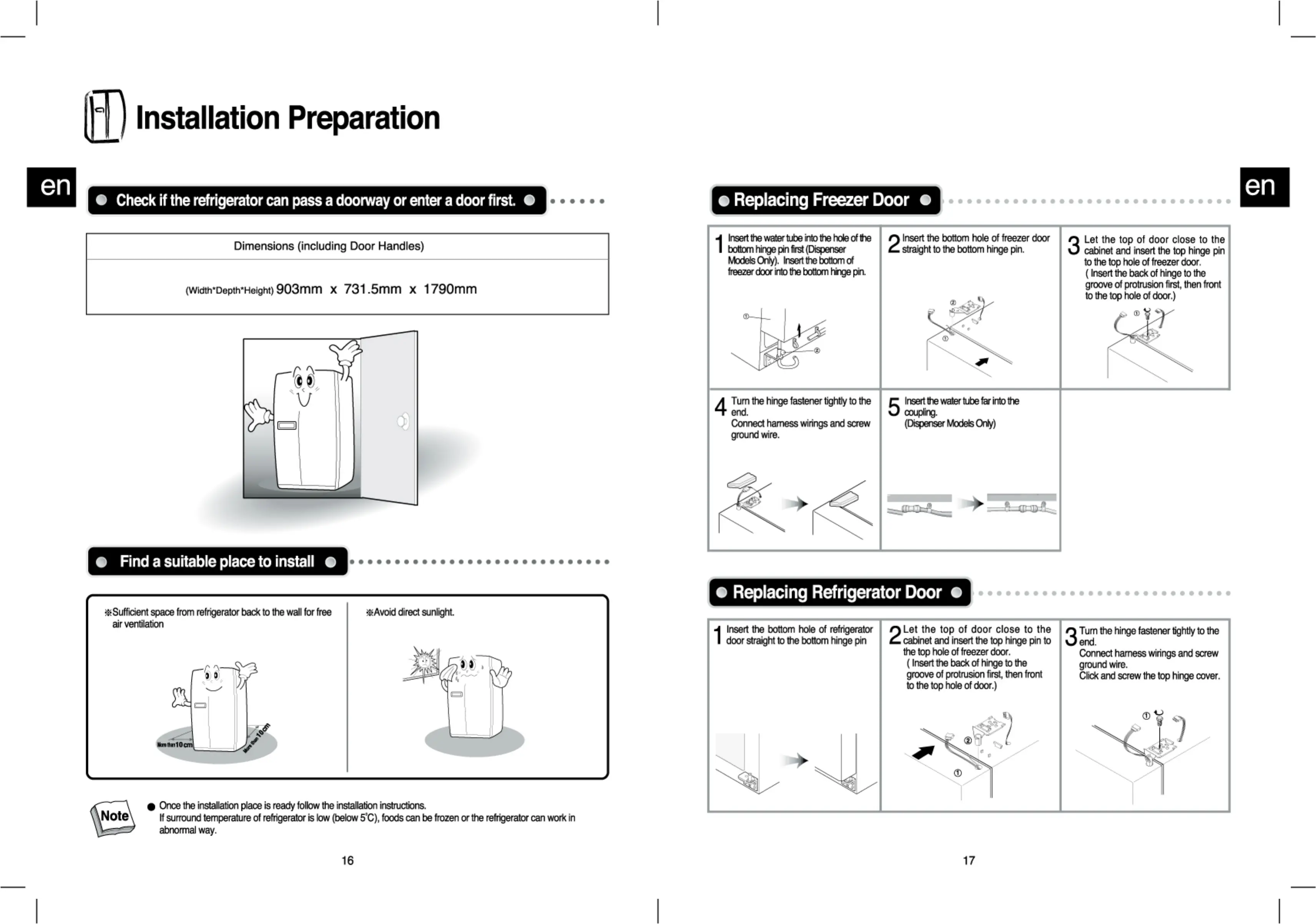 Electrolux ESE5688 - Installation Preparation; Doorway and Entry Check; Selecting a Suitable Installation Place