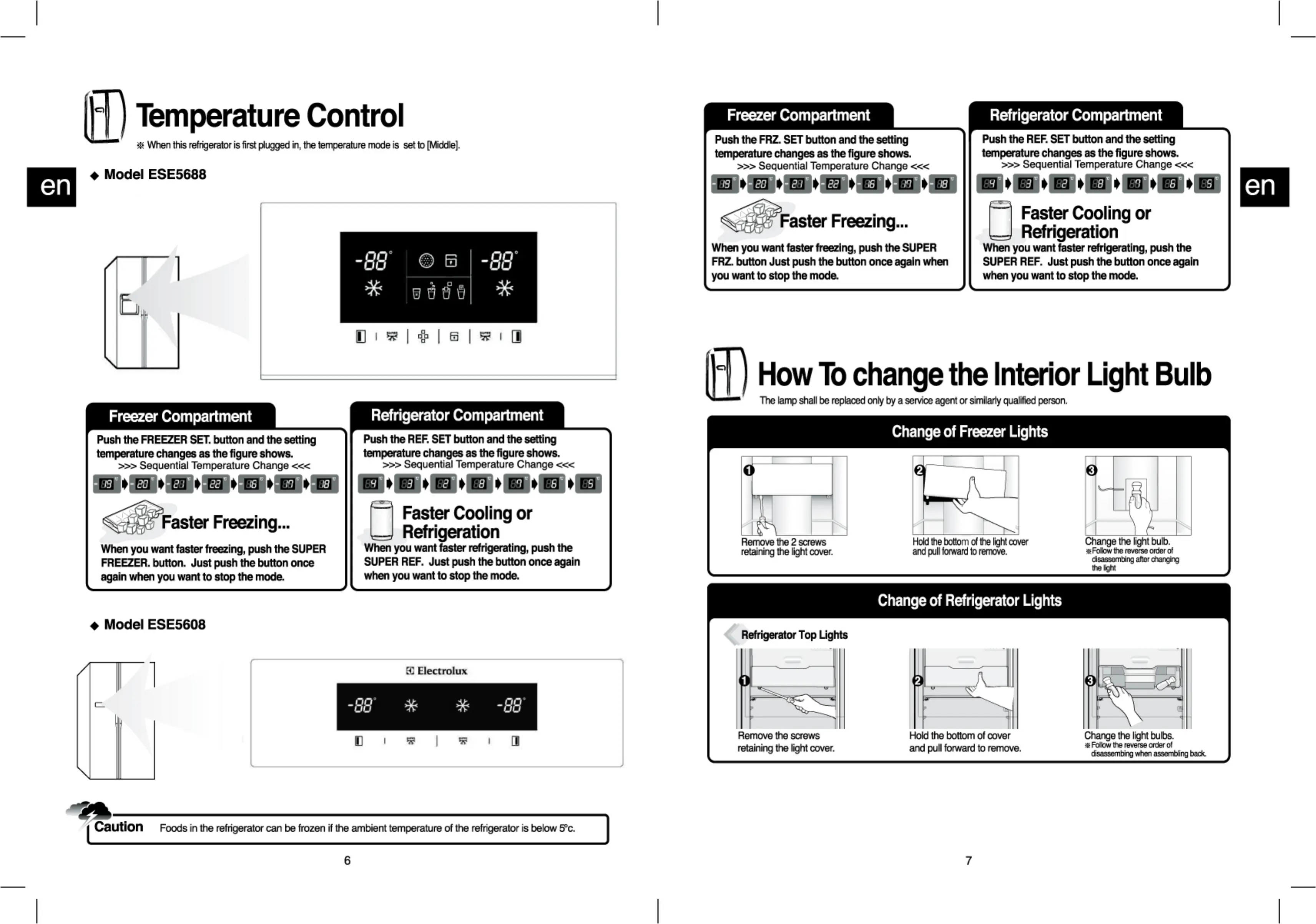 Electrolux ESE5688 - Temperature Control; Freezer Compartment Temperature; Refrigerator Compartment Temperature; Faster Freezing Function