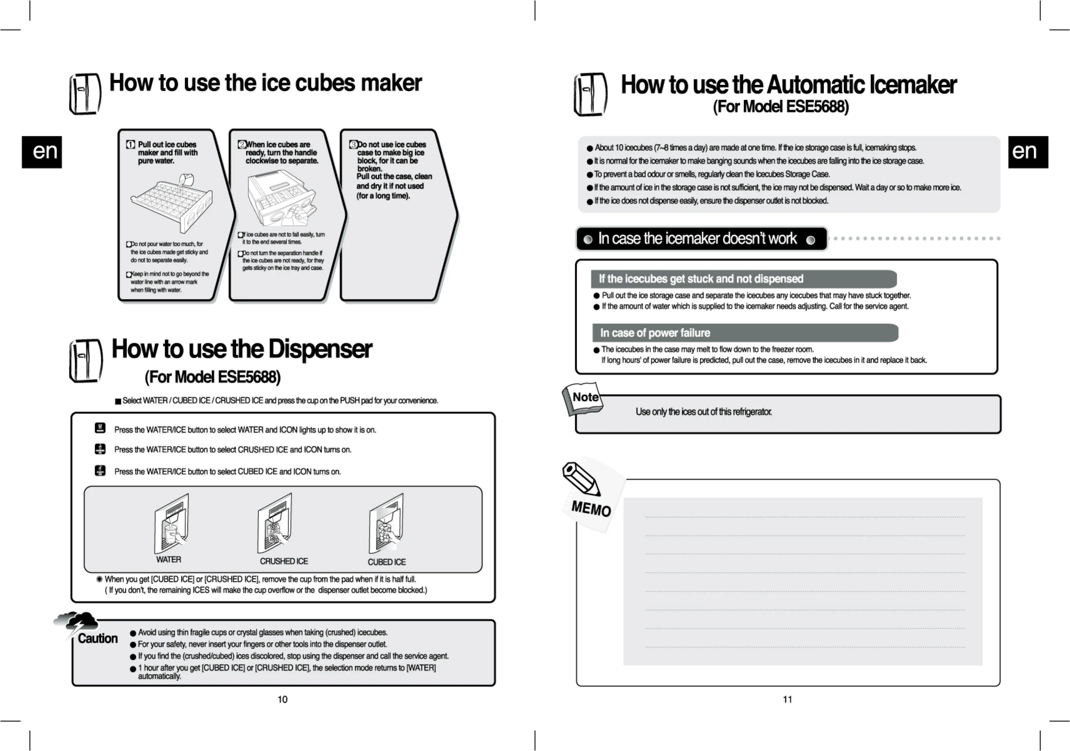 Electrolux ESE5688 - How to Use the Ice Cubes Maker; How to Use the Dispenser; How to Use the Automatic Icemaker