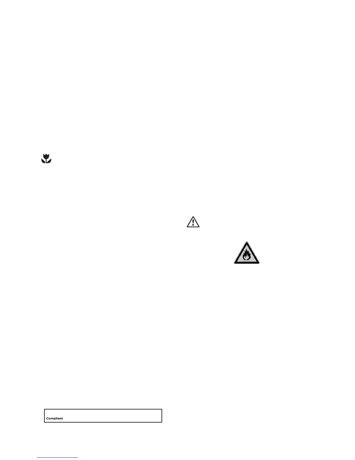 Warning: Risk of fire / flammable materials