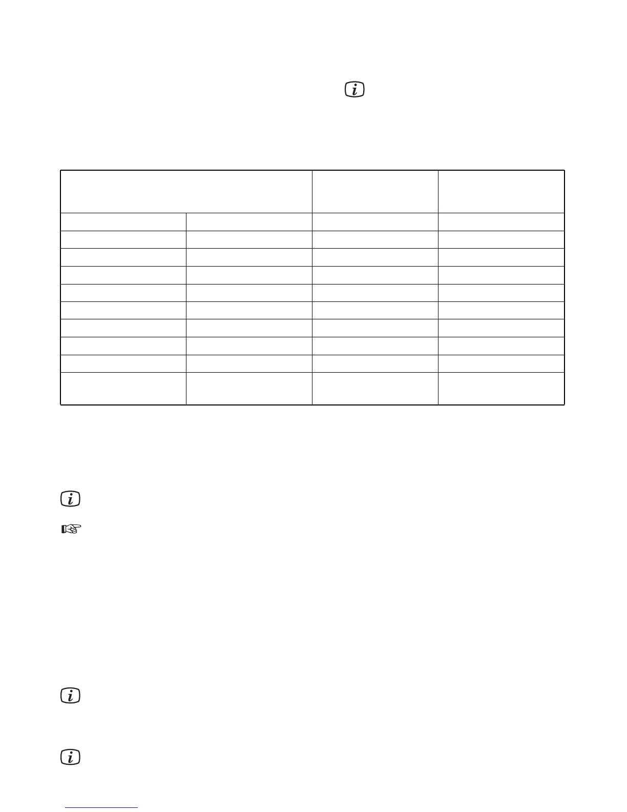 Adjust the water softener according to the table below for the