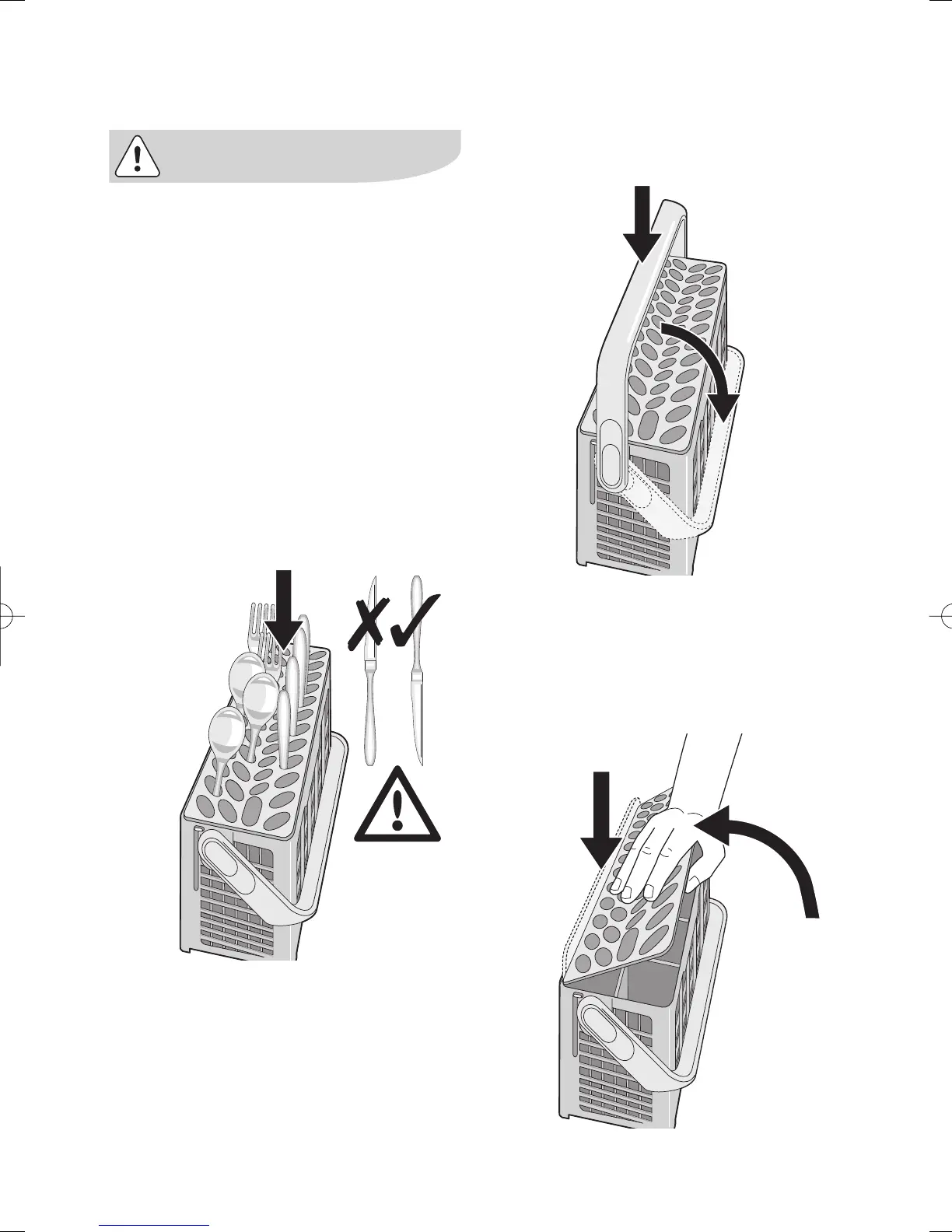 lower spray arm, load the cutlery with