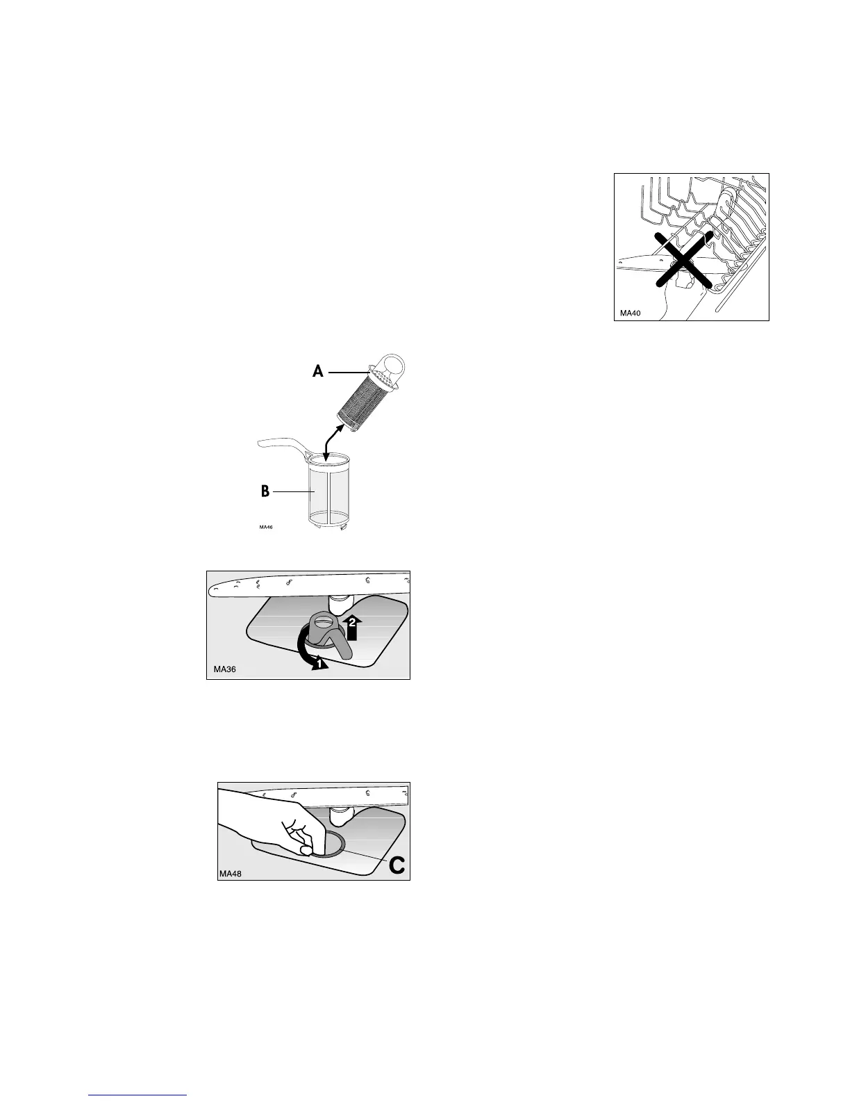 6. Remove the flat filter (C) from the base of the washing