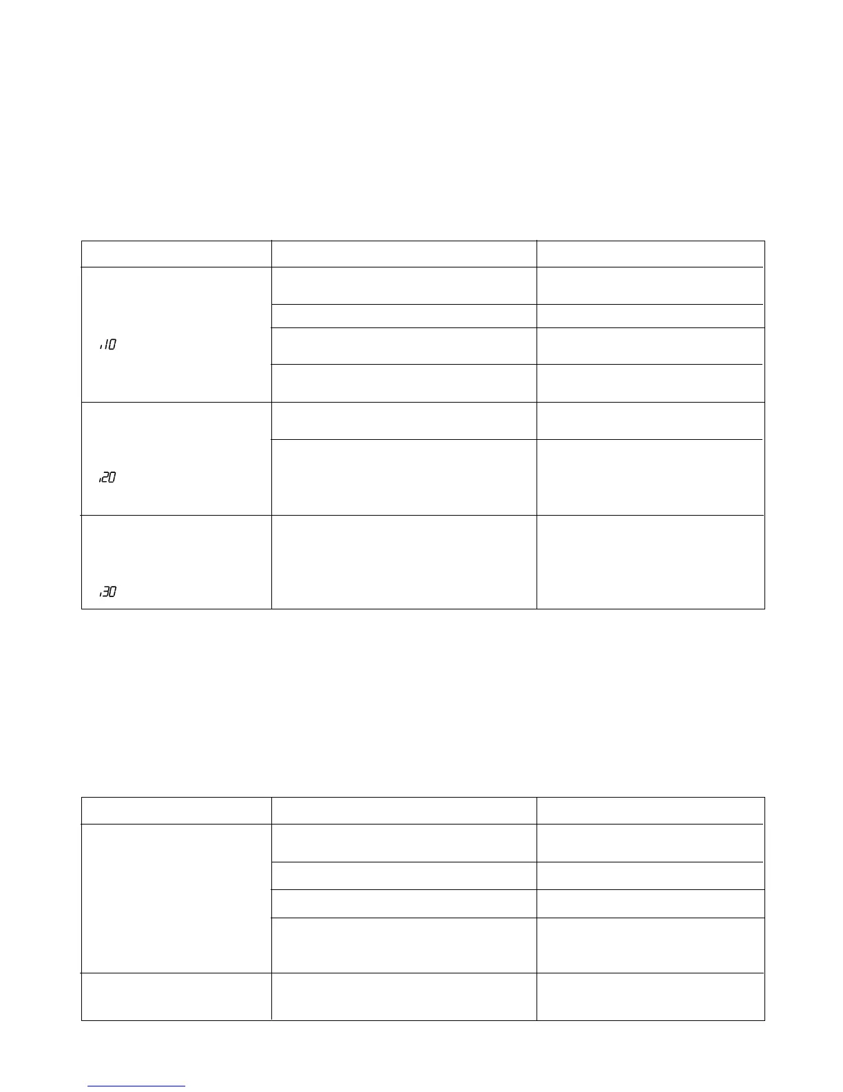 - a fault code visible in the digital display (as indicated in the following chart).